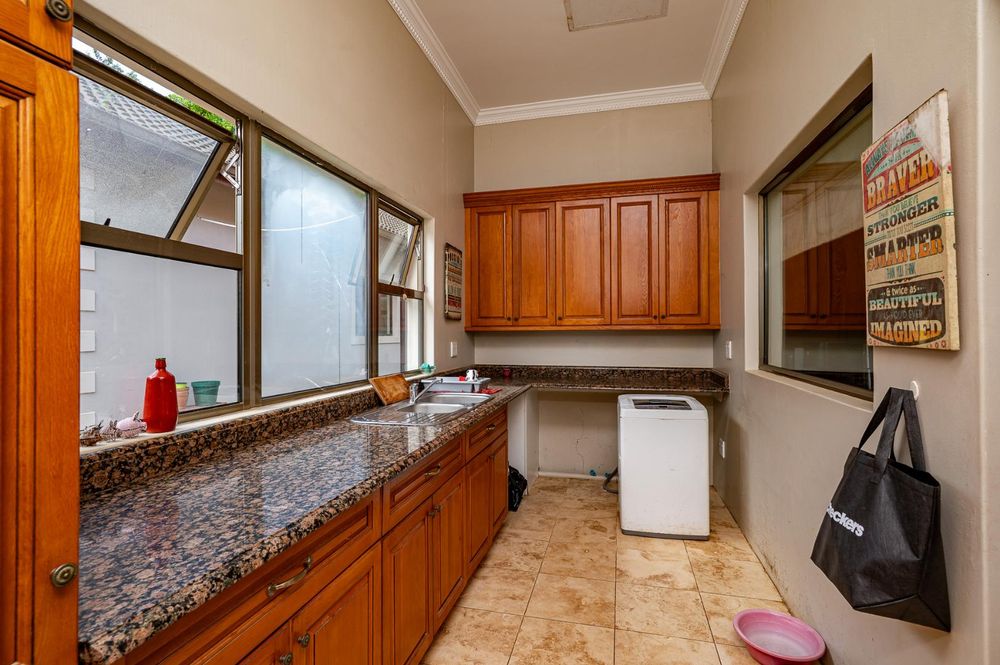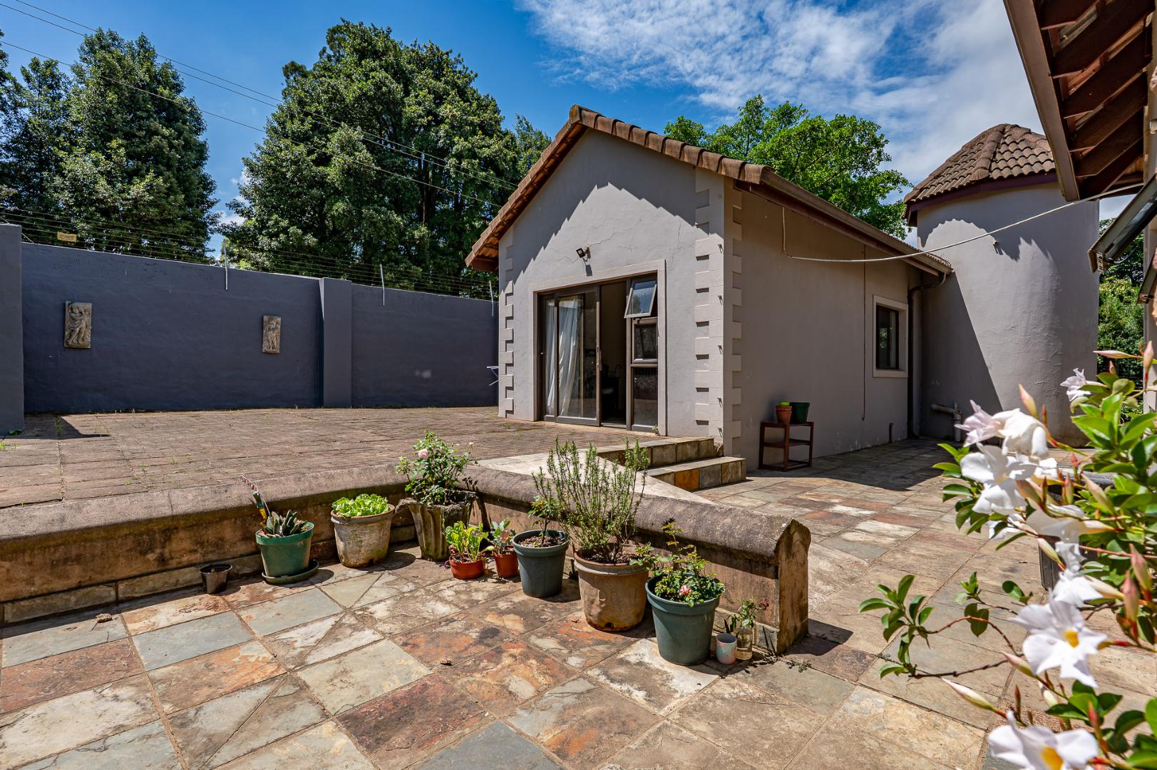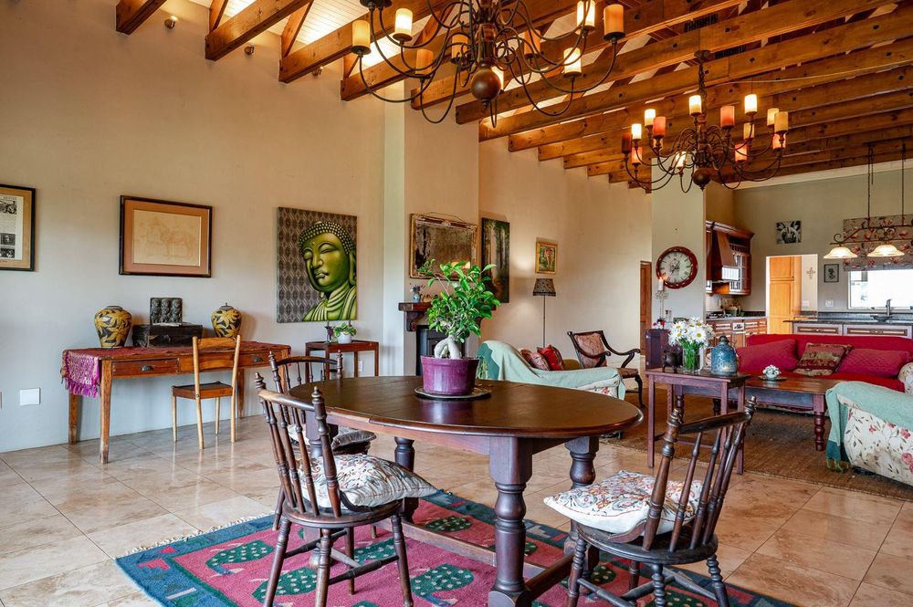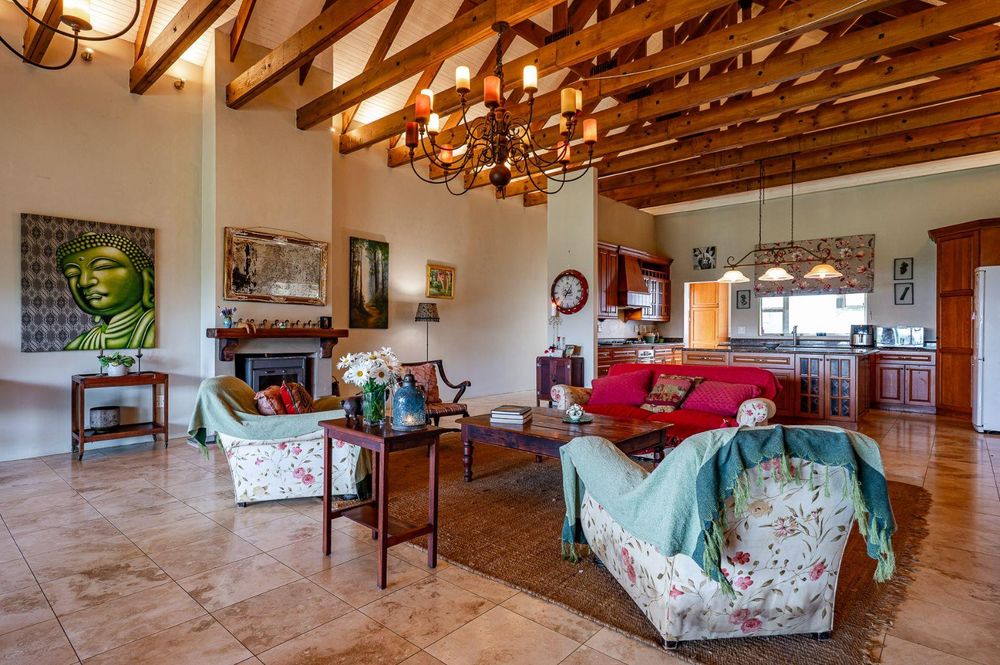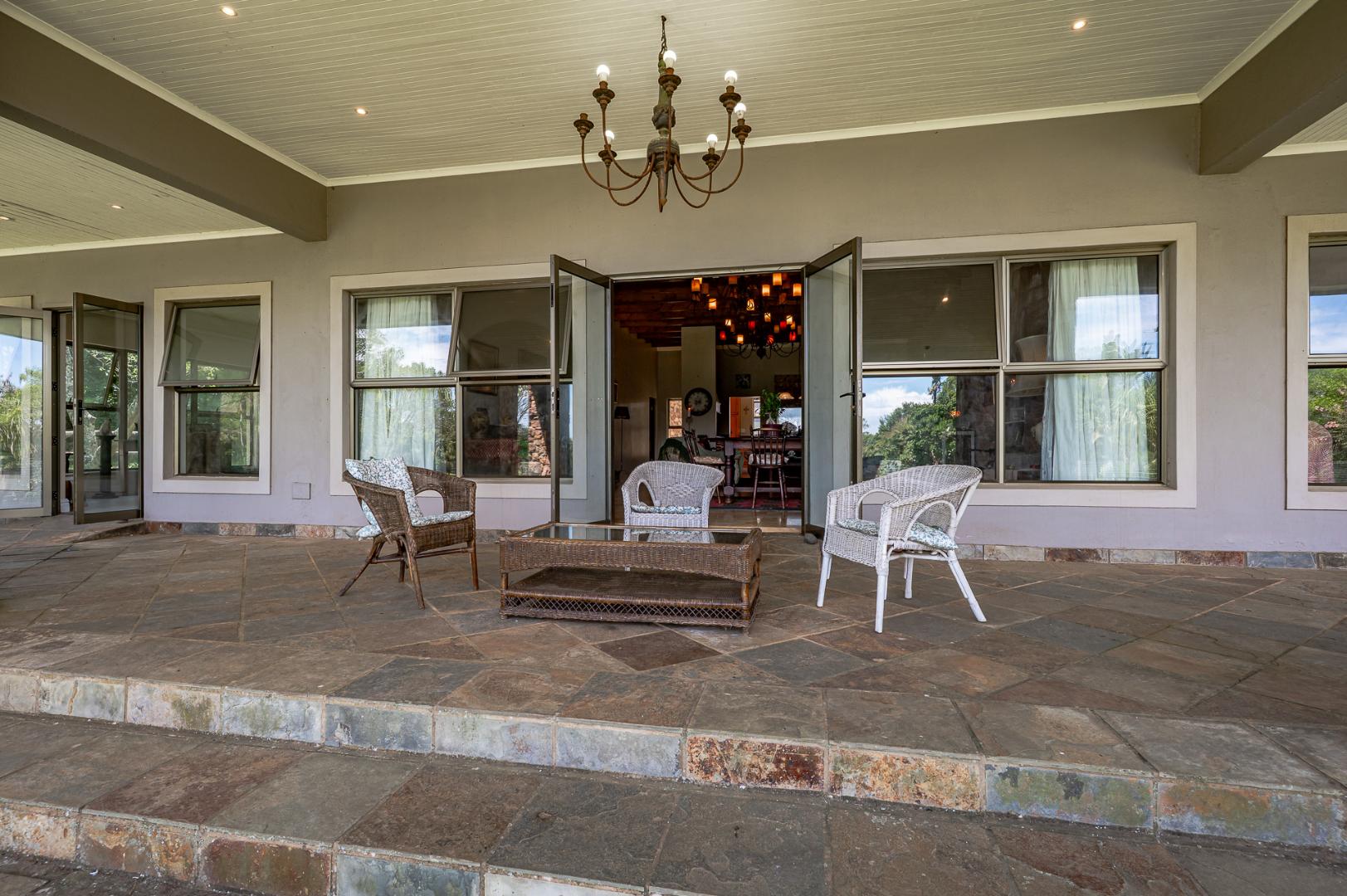 This home has all the charms of yesteryear with modern sensibilities. It has a spacious entrance, a beautiful fireplace and an enormous open plan sitting room with French doors leading out to a large undercover, stoned patio, which provides an all-weather outdoor entertainment area. From here there are wonderful views overlooking the estate. A particular feature of the home is the show stopping water feature which, with a little DIY to get it up and running again, will cascade wonderfully on either side of the patio.