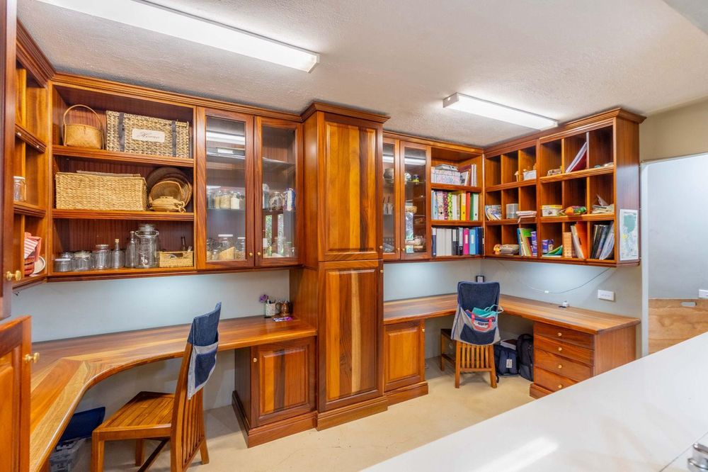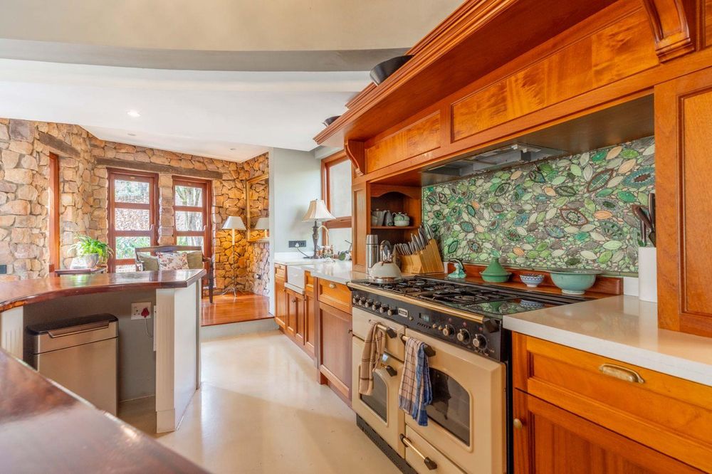Step inside and you’ll immediately sense the highest quality finishes and thoughtful design that define this home all round. The spacious lounge opens seamlessly onto a generous deck with a built-in fireplace, perfect for relaxed evenings overlooking the estate’s dramatic cliffs and valley vistas, while the adjacent sun lounge floods the space with natural light for those quiet mornings with a coffee. Just off the lounge is a dedicated bar area that invites effortless entertaining, flowing through to a gourmet kitchen fitted with the latest new Smeg stove and all the premium appliances you’d expect in a home of this calibre. A separate scullery and laundry keep things practical and hidden from view, and there’s a well-appointed home office for when you need to focus without leaving the comfort of your own space.
