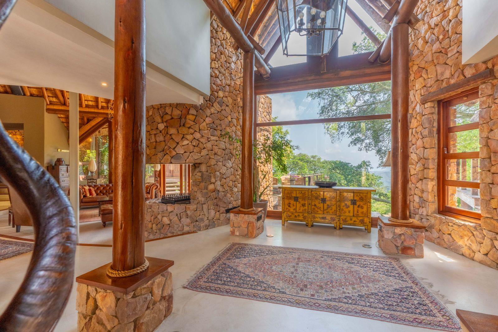 Nestled in the heart of the private Phezulu Game Estate, this absolutely beautiful home captures the true essence of luxury safari living in the Valley of a Thousand Hills. With panoramic scenic views stretching across the estate's rolling conservation lands and free-roaming game, every day feels like a private retreat just minutes from Hillcrest and 35km from Durban. The estate itself is a secure, low-density sanctuary spanning hundreds of hectares of indigenous bushveld, where giraffe, zebra, impala and a host of birds wander right up to the unfenced gardens, yet you enjoy 24/7 gated security, patrols and complete peace without ever feeling confined. No domestic pets are allowed on the estate, preserving the natural harmony that makes this place so special.