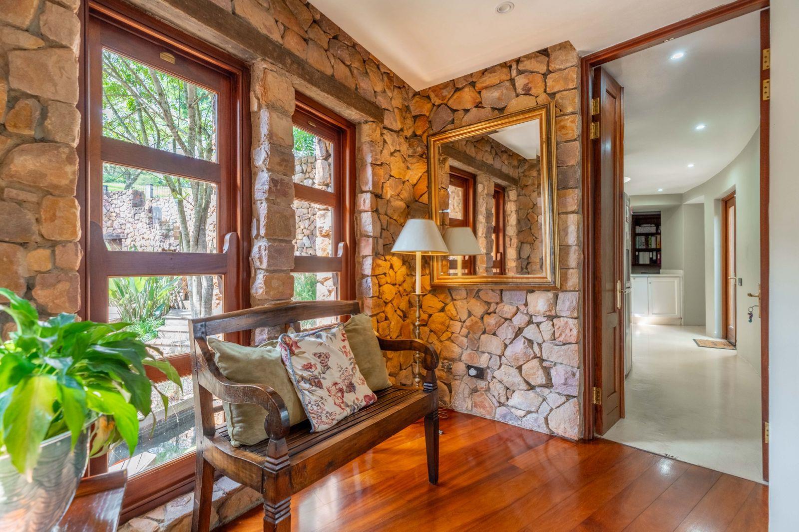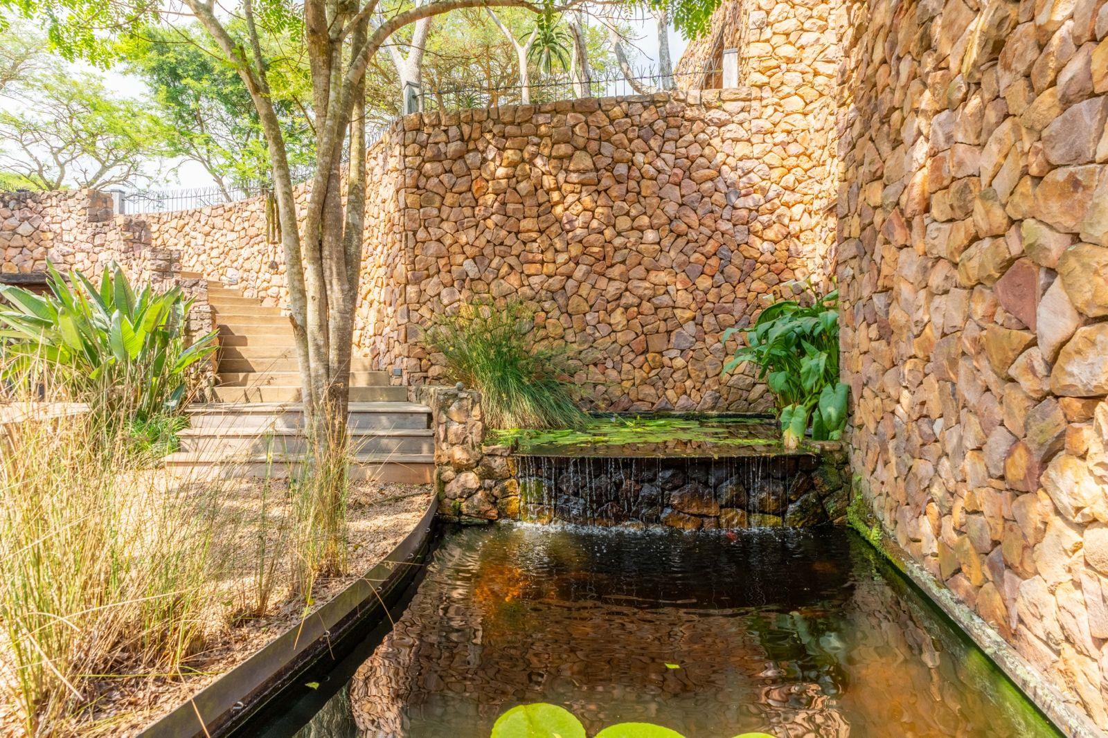 The three generous bedrooms are all en-suite and finished to the same exacting standards, offering privacy and luxury whether you’re hosting guests or simply unwinding. A separate room has been cleverly designed and equipped as a home gym, complete with plenty of natural light and space to keep you active while enjoying those estate views. Outside, the small pool is perfectly positioned for cooling dips, complemented by a fire pit and a serene koi pond that adds a touch of tranquillity to the landscaped gardens. Three garages provide ample secure parking and storage, and the entire property runs on a full solar system with batteries, ensuring effortless, eco-friendly living even during load-shedding.