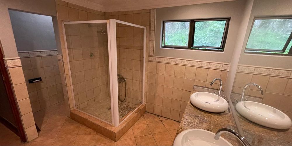 This three-bedroom house is available for rent at R12 000 per month. One room lends itself perfectly as a home office. Inside, you’ll find a dining room that leads directly onto a covered veranda which is ideal for relaxed meals or quiet moments outdoors.