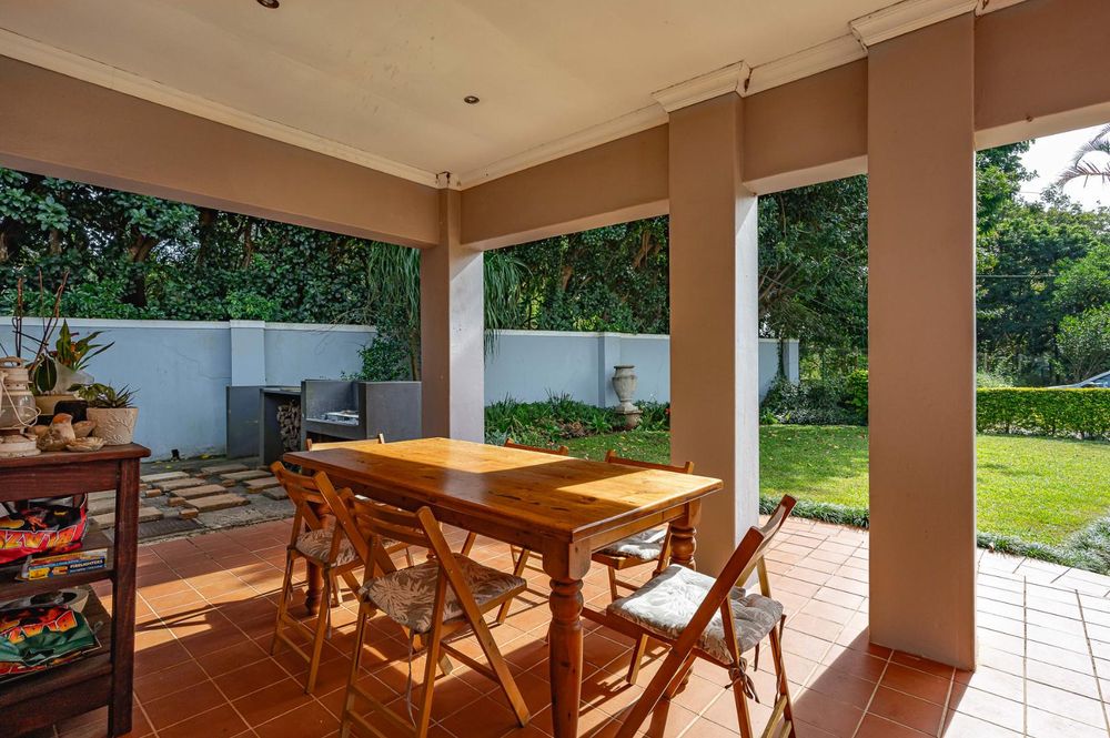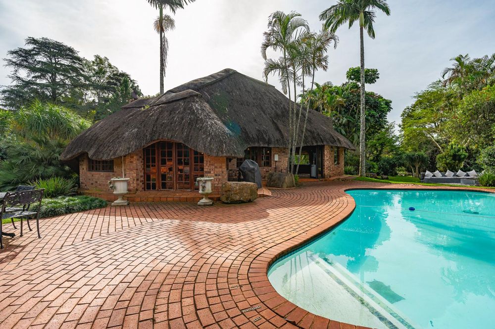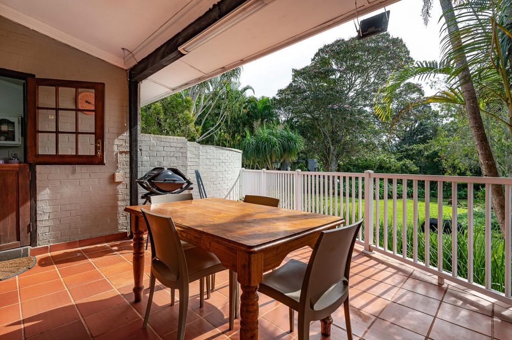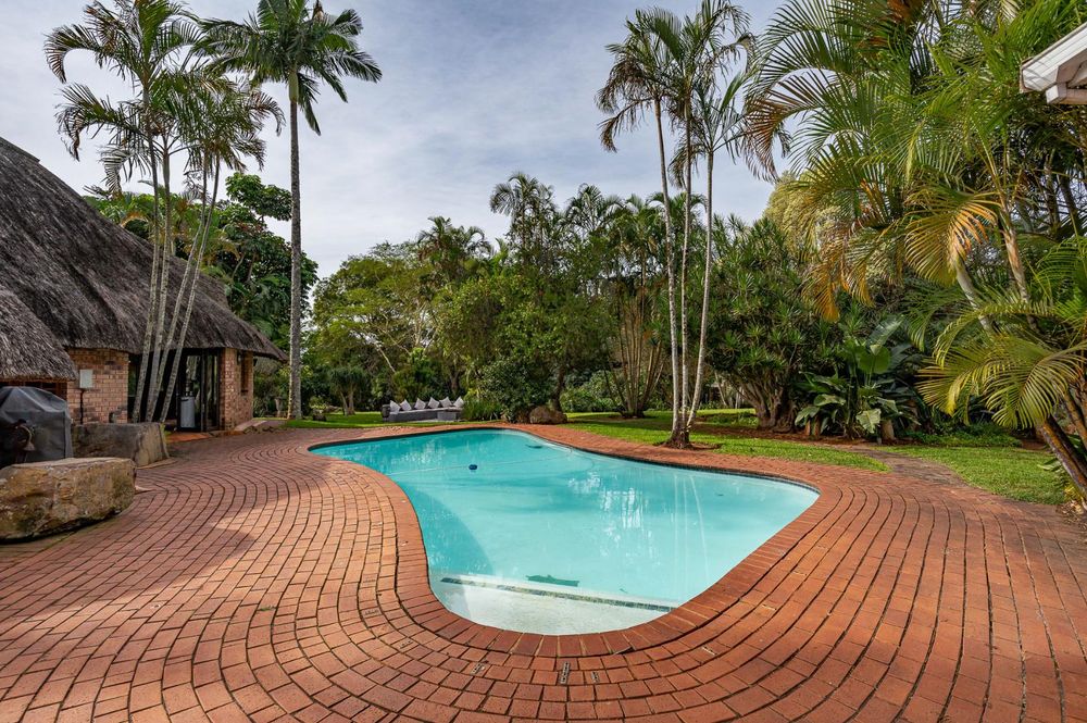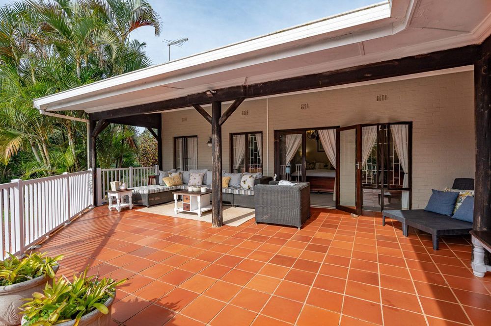 The verandah overlooks a large sparkling swimming pool, a fully equipped entertainment area with a built-in bar, and ample space for gatherings.