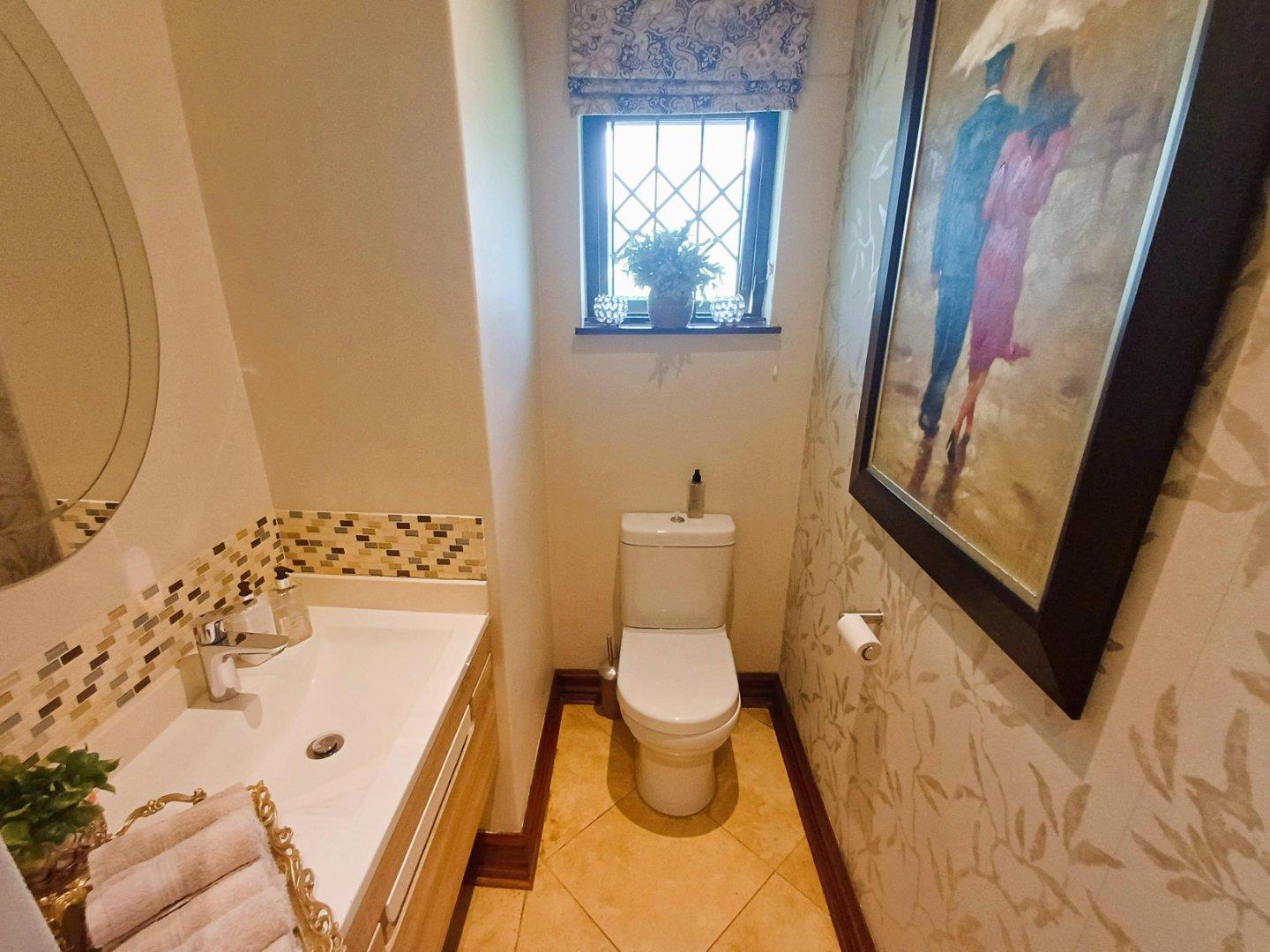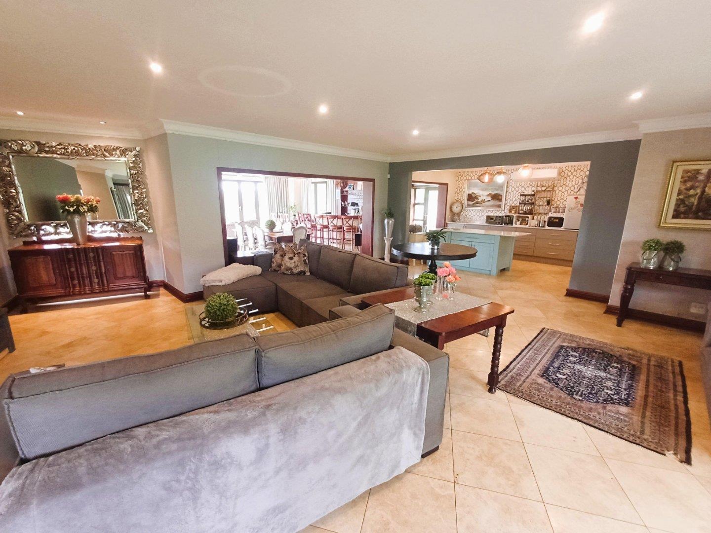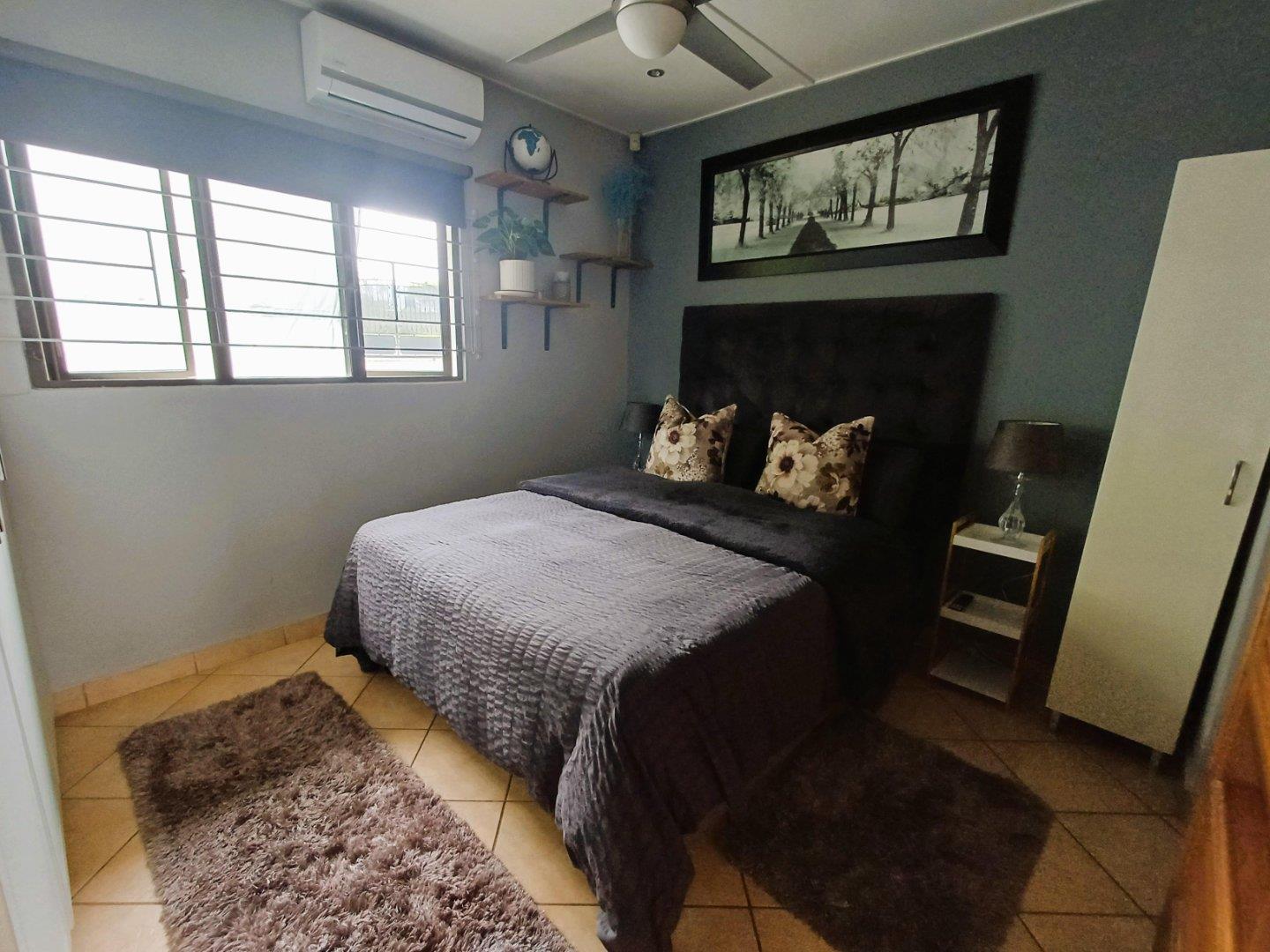 At the rear of the property, a courtyard serves for laundry drying, accompanied by a private area with fish pond and space for bonfires or braais. This section also includes a compact flatlet suitable for guests or extended family, offering an open-plan kitchenette and lounge, a bedroom, and an ensuite shower.