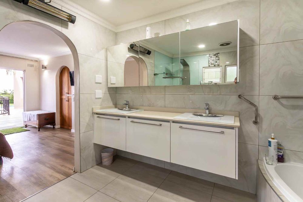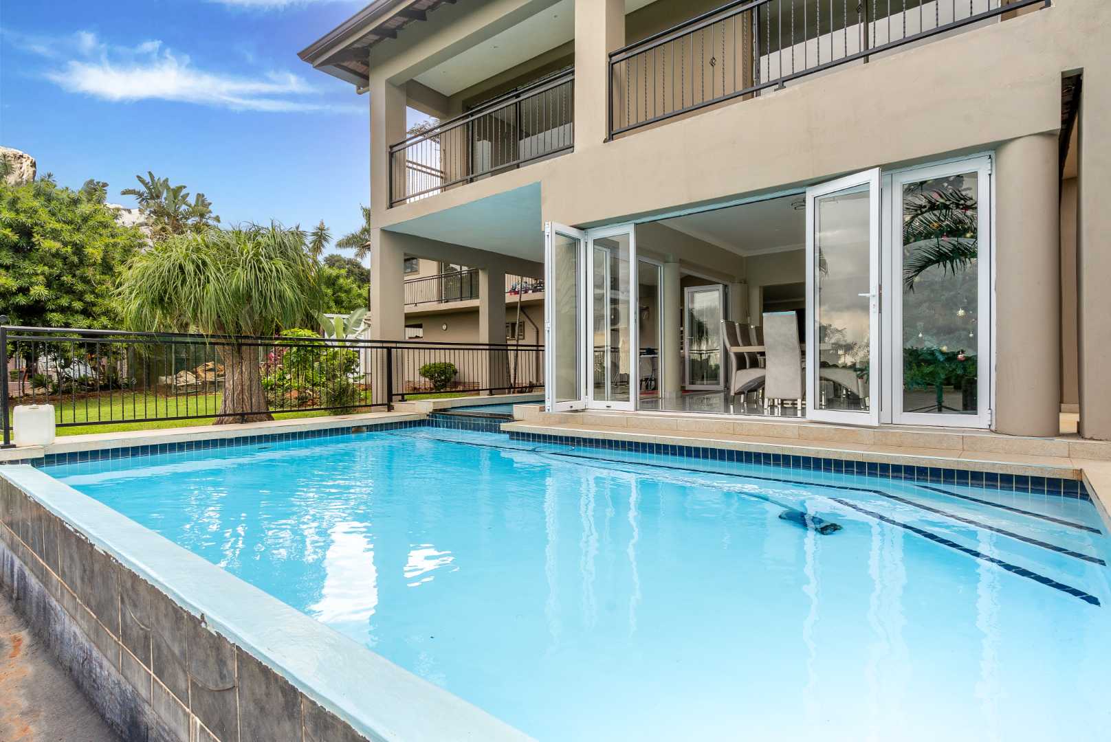 This home is ideal for entertaining and the open plan living areas flow out onto a beautiful pool area looking over the garden and the scenic sea views in the distance.