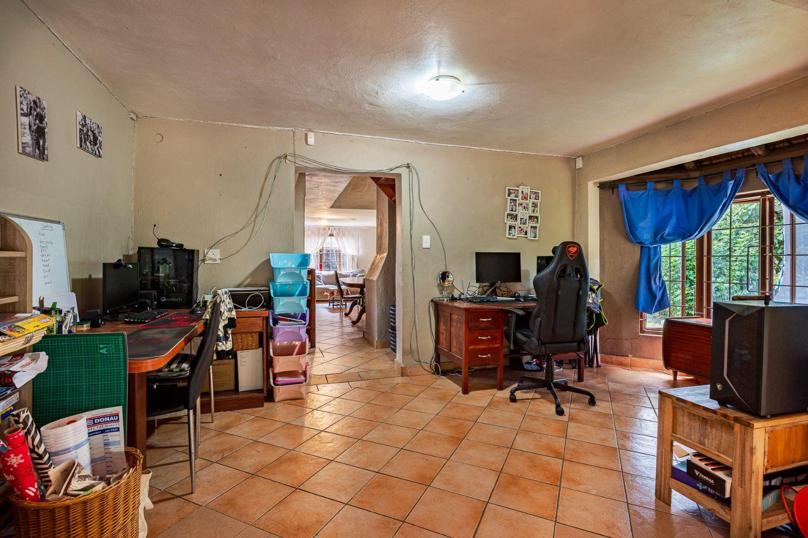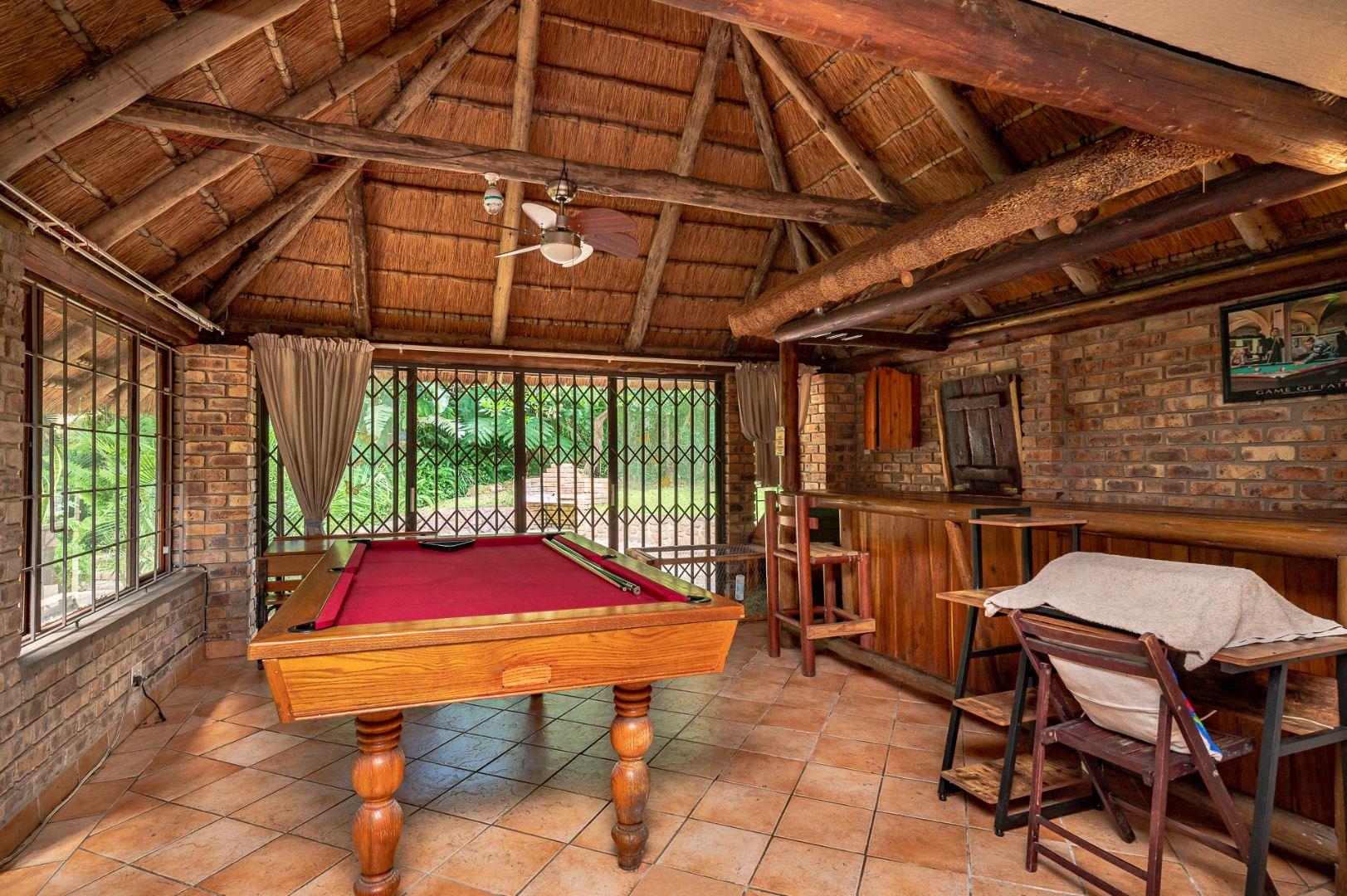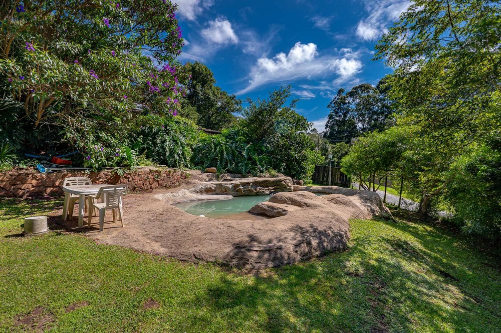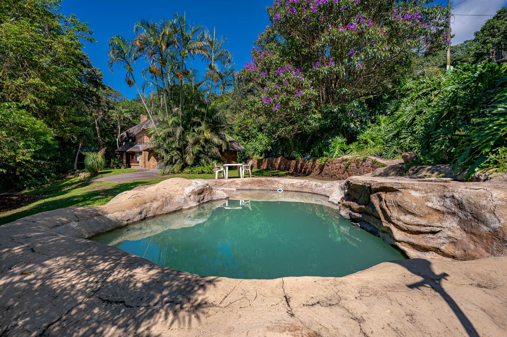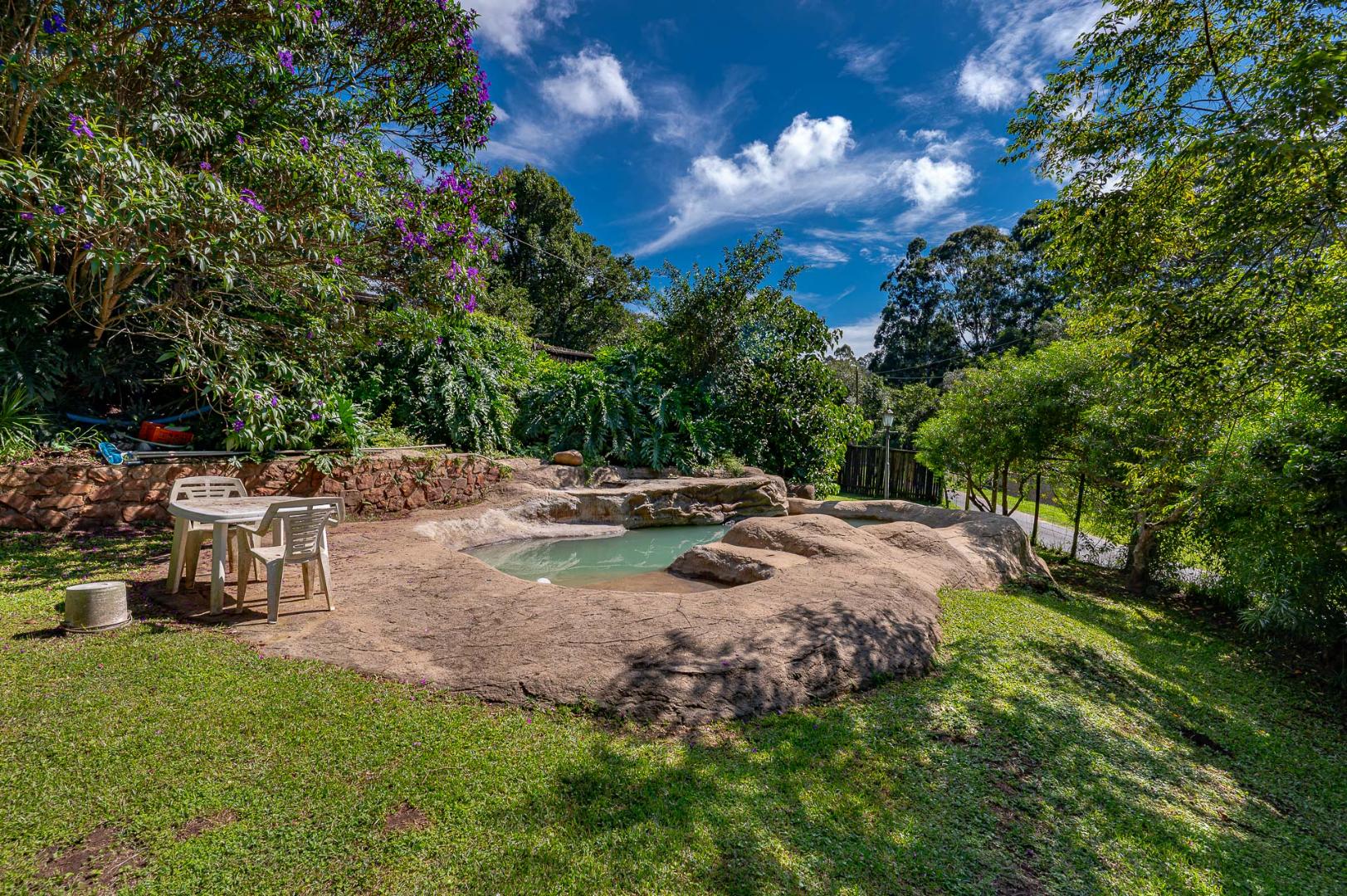 Outside there is plenty space for the kids to play in the fully fenced in garden a cute stream bubbles through with a beautiful rock pool that blends into the scenery a perfect setting for sundowners , family fun , and lazy weekend relaxation.
