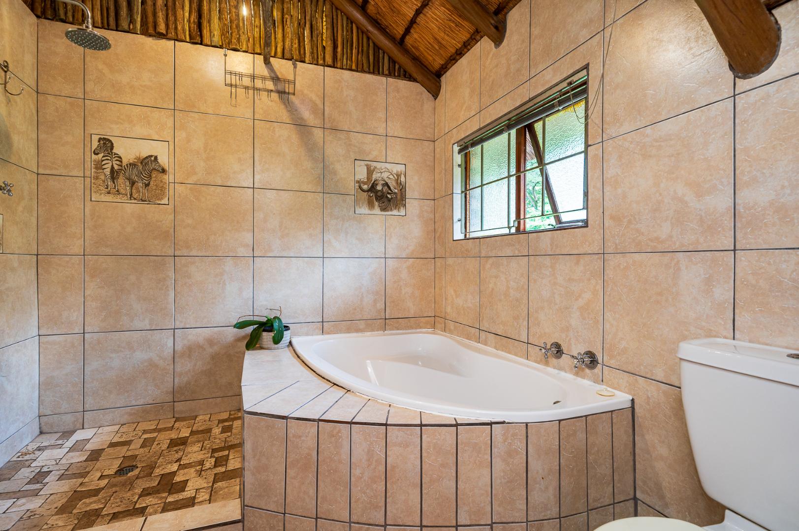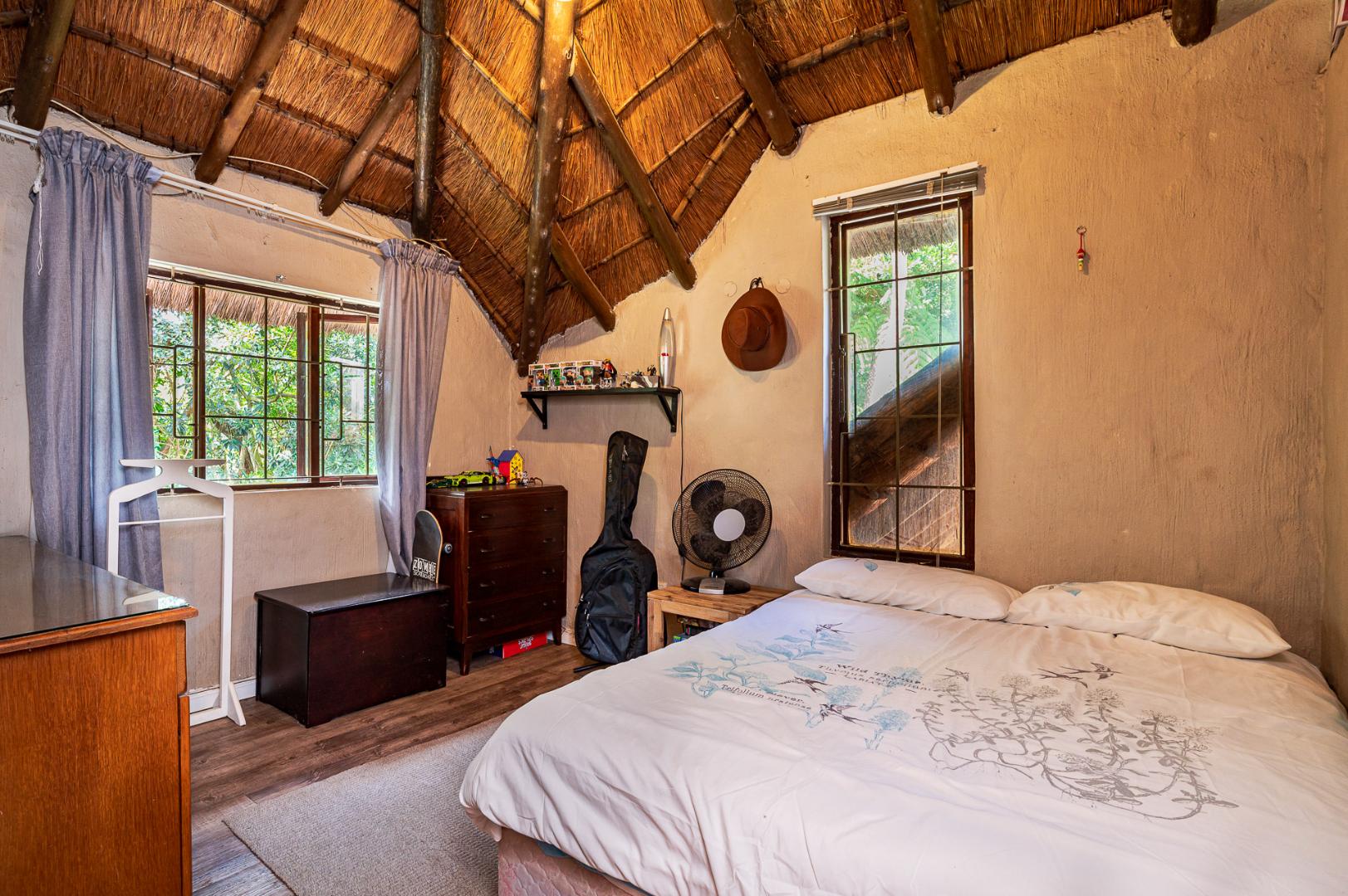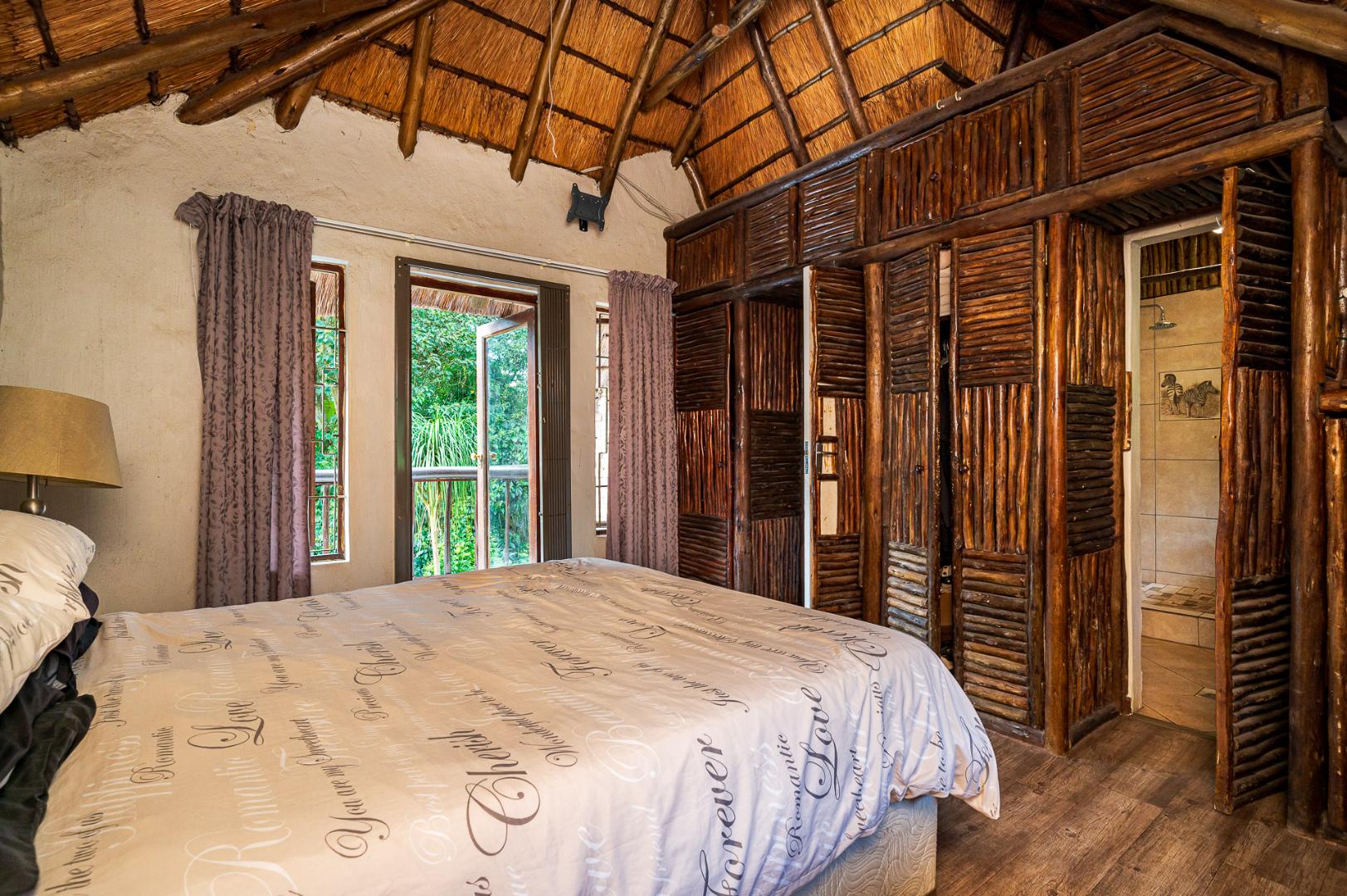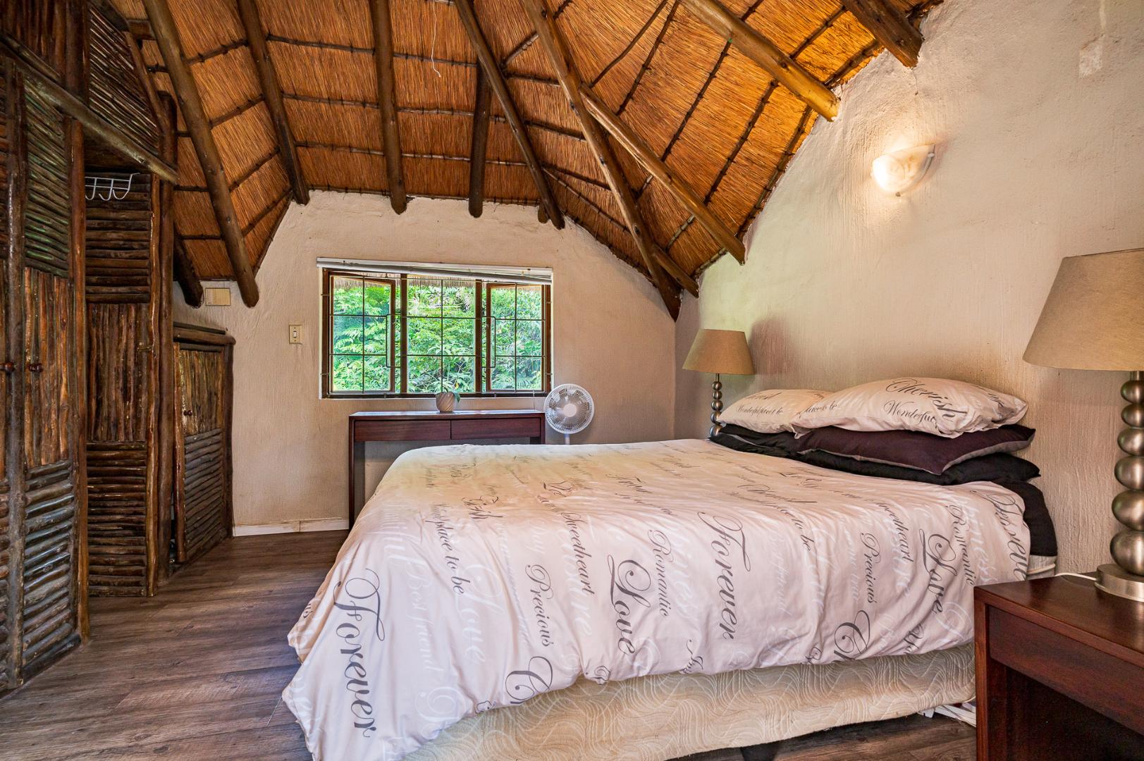 Double story Thatch a wonderful place to raise a family! This charming double-story thatch offers 3 bedrooms and two bathrooms upstairs, with the main suite opening onto a private balcony the view overlooks a lush greenbelt in the treetop canopies.