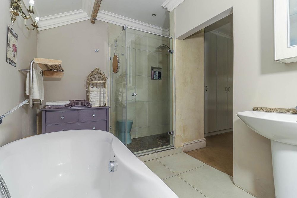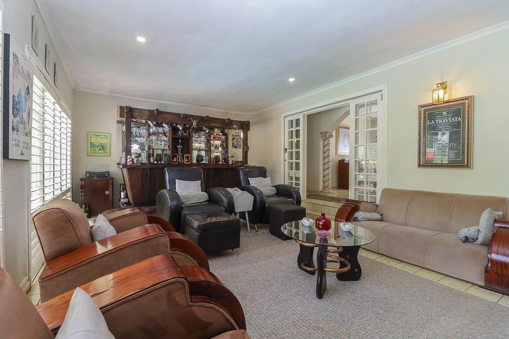 Outside, the lifestyle continues. The sparkling swimming pool and expansive garden invite long summer afternoons, weekend braais and plenty of space for children and pets to run and play. Additional features include double garaging, ample parking, and domestic accommodation with a storeroom, adding further practicality to a home already rich in space and character.