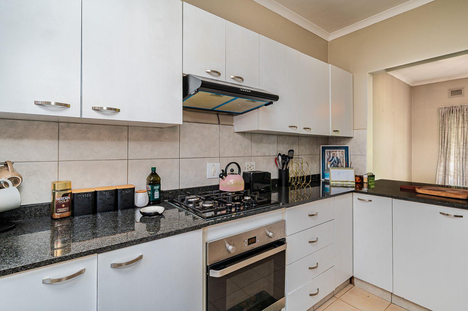 The heart of the home is the well-appointed kitchen, boasting granite countertops, a gas hob, and ample cupboard space, making it both functional and stylish. Whether you're preparing a family meal or hosting guests, this kitchen caters to your needs with ease and sophistication.