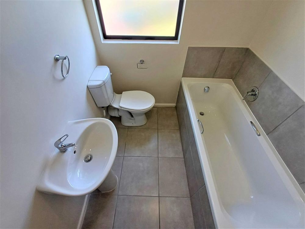 Privacy and comfort define the bedroom wing. The principal suite, positioned for convenience adjacent to the living area, features a luxurious en-suite with a walk-in shower. Two additional well-proportioned bedrooms, each with built-in wardrobes, are served by a full family bathroom complete with a deep soaking tub.