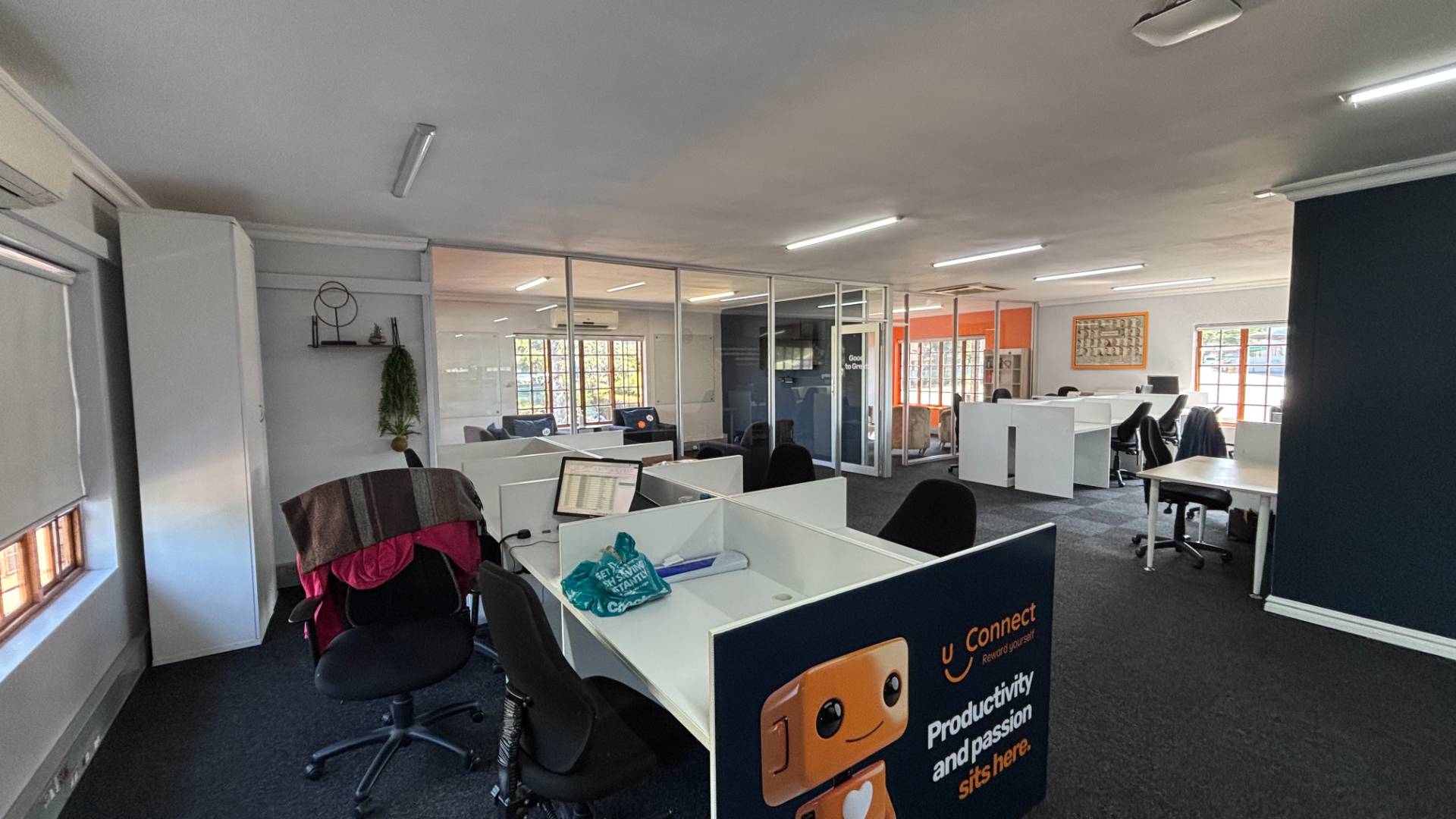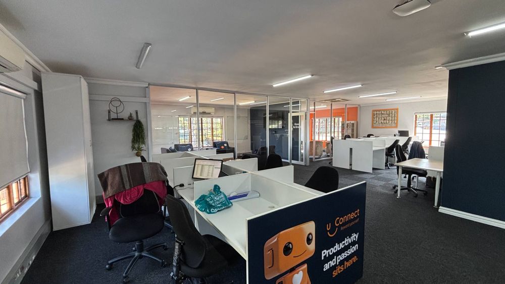 The unit also benefits from good natural light and an elevated position within the park, and includes 8 allocated external parking bays at R300 per bay, with additional bays available if required, providing convenience for both staff and visitors.