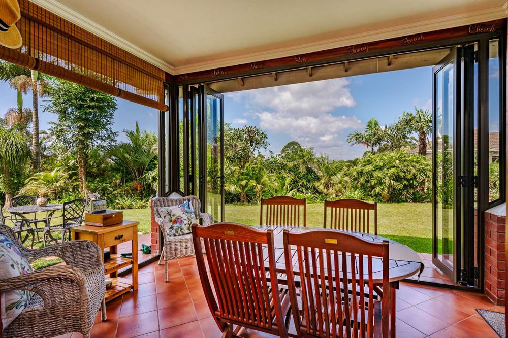 Nestled within the prestigious confines of Chaceley Estate, this immaculate 3-bedroom, 2.5-bathroom residence epitomizes sophisticated family living. A testament to modern elegance, the home welcomes with an open-plan layout downstairs, seamlessly merging your lounge, dining room, and kitchen adorned with granite countertops. Convenience meets luxury with a scullery hidden from the living area which is plumbed for a dishwasher, while a separate undercover courtyard serves as a laundry area adding practicality. An enclosed patio, embraced by stack-back doors, invites year-round enjoyment of meticulously landscaped tropical gardens, enhancing the allure of outdoor living.