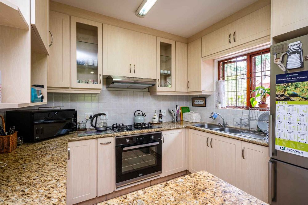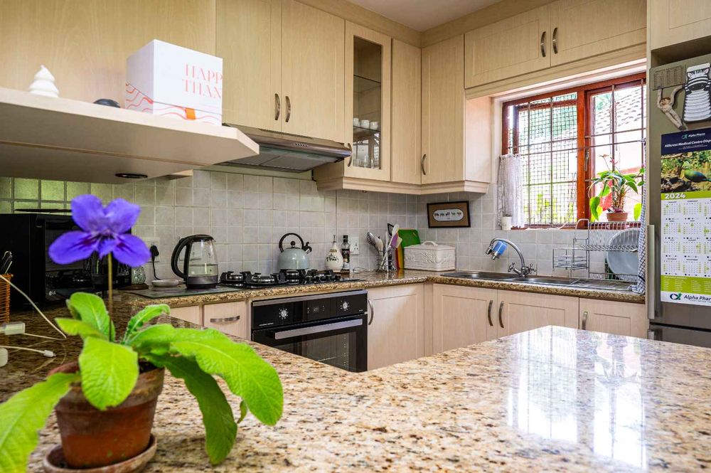 The heart of this residence is its inviting open-plan living area & kitchen, exuding a warmth with its refreshing granite countertops in soothing tones, creating an inviting atmosphere. Ample cupboard space ensures organization is a breeze, and the 4-burner gas hob adds a touch of modern convenience for those who love to cook, your dishwasher can also be conveniently hidden away in the dining rooms built in cabinetry. Beyond the kitchen, the home features three well-appointed carpeted bedrooms, providing comfortable retreats for each family member. Two bathrooms with a main en suite (with shower) and family bathroom (with tub). This home is the epitome of move-in-ready!