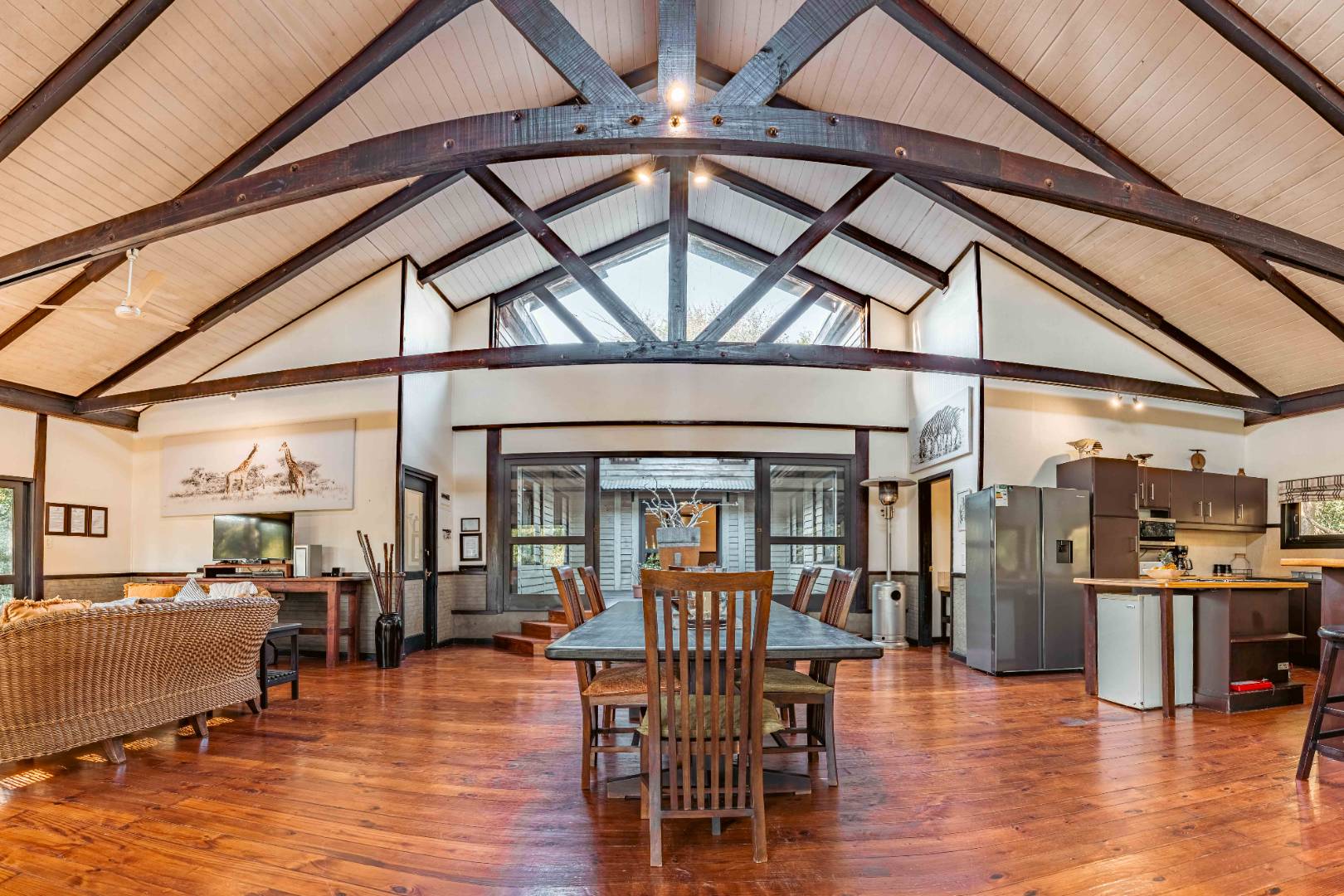 Welcome to your private sanctuary in the heart of the African bush. This beautifully designed 4-bedroom, 4-bathroom home is set in the sought-after Kuleni Game Park, offering the perfect balance of luxury and nature. The home includes a separate, self-contained guest suite, ideal for visitors or as a private rental unit. The spacious open-plan kitchen, dining and lounge area flows seamlessly onto a generous undercover veranda, ideal for outdoor living and entertaining. From here, enjoy views of your private swimming pool, framed by mature trees that ensure total privacy and a true sense of seclusion.