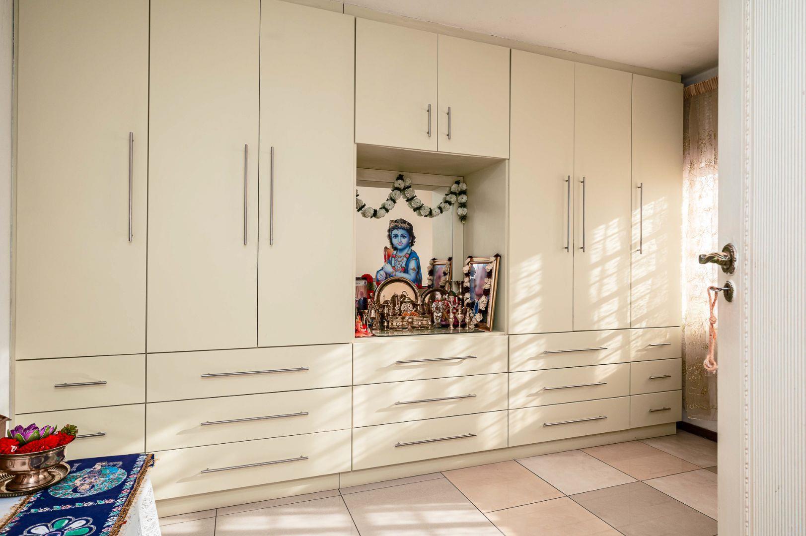 The upper floor offers four spacious bedrooms, all with ample built-in cupboard space.