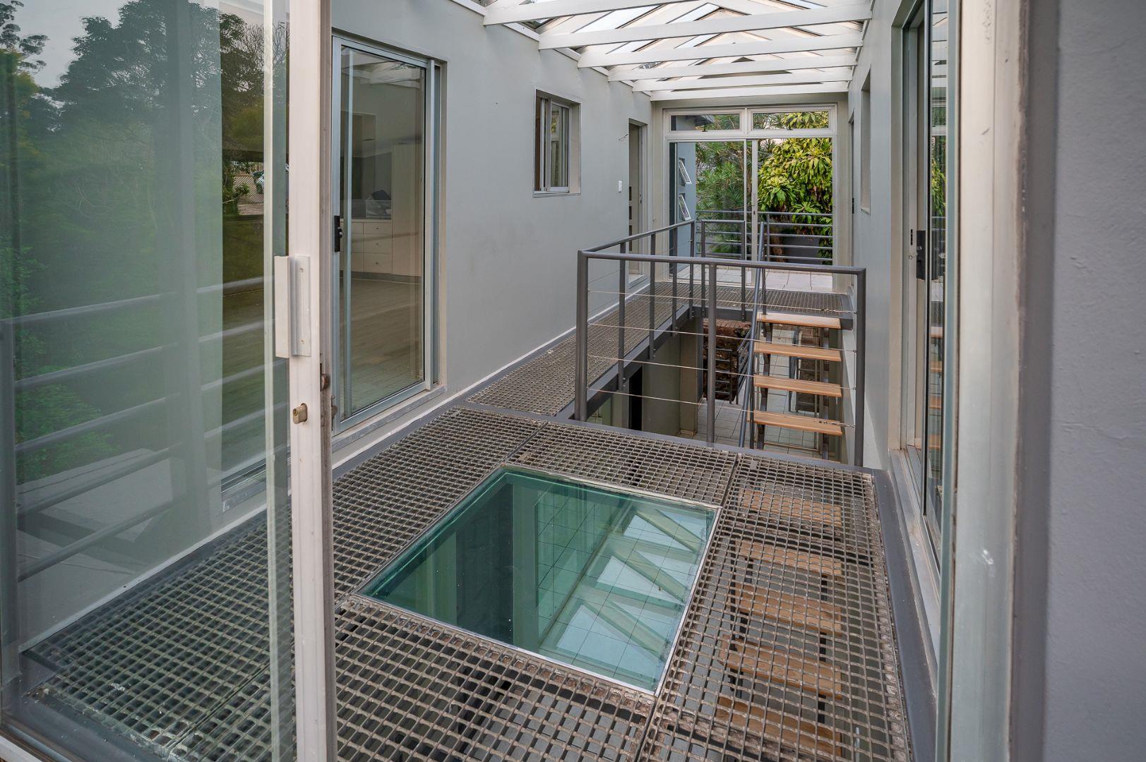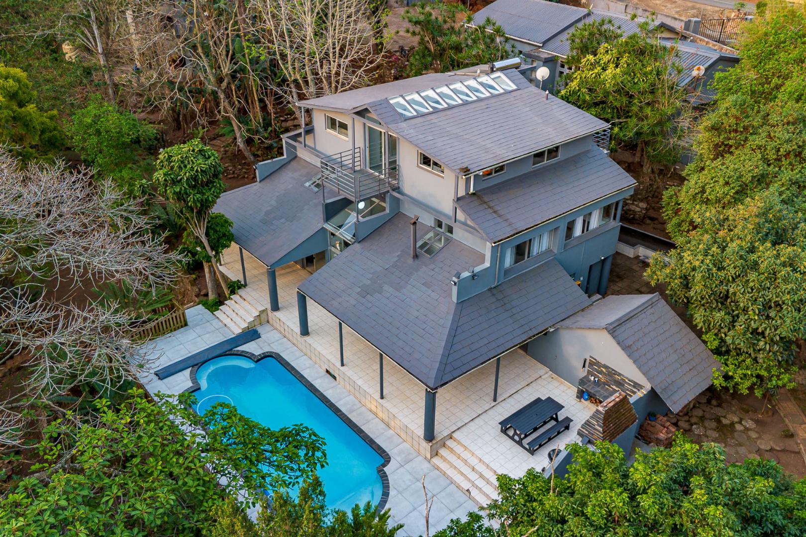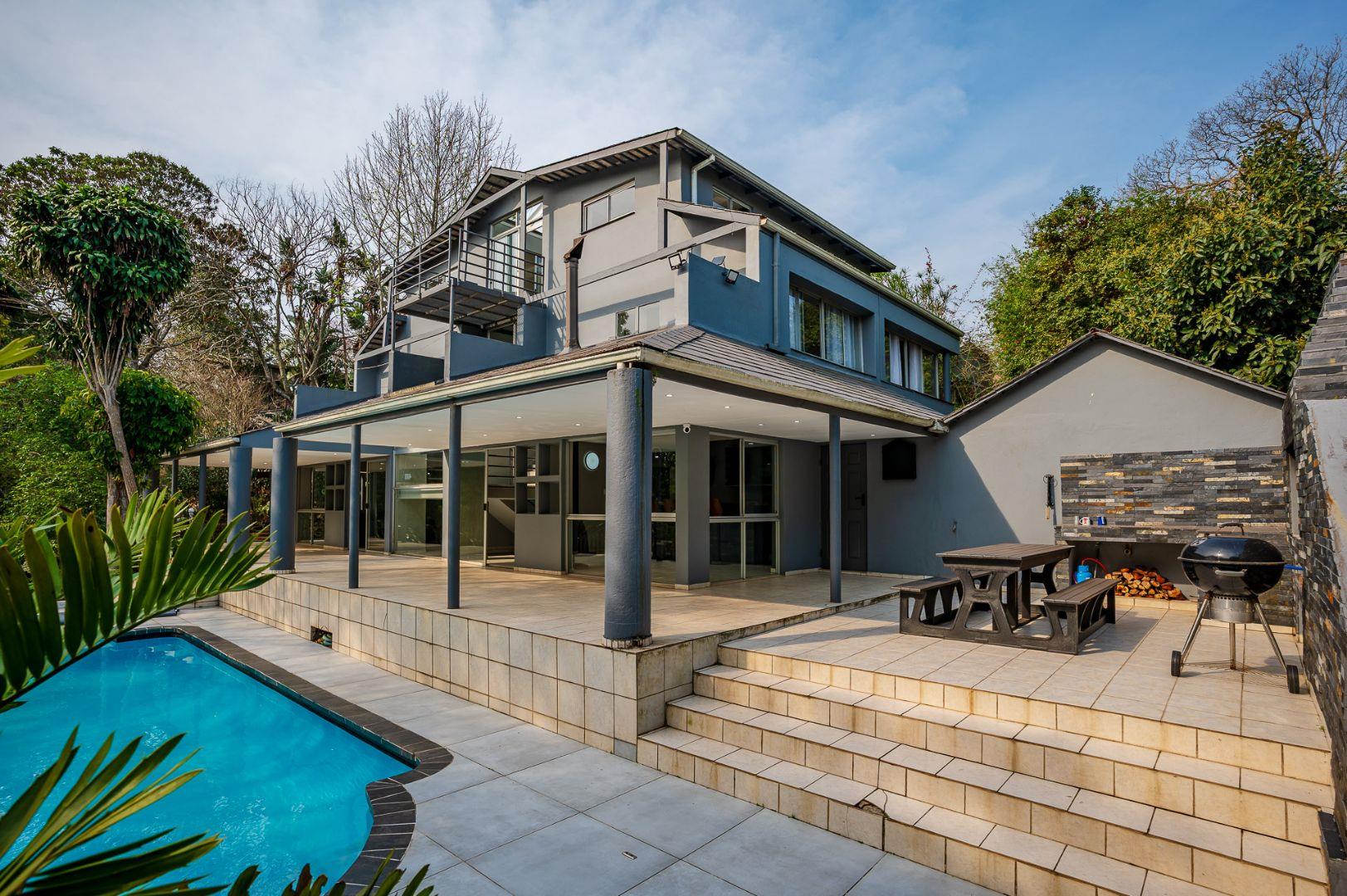 Set in one of Kloof's most sought-after roads, this unusual modern designer home has it all. Just a short walk from St Mary's School, this is a spacious, well-designed family home which truly has the wow factor – and loads of flexibility. Plenty of windows to let the light in and set over three floors. Fabulous for entertaining with open plan living room, dining room, modern kitchen, sunken lounge area and bar on the ground floor – opening up seamlessly onto a wonderful entertainment area and large, sparkling pool. Perfect for hosting unforgettable gatherings.