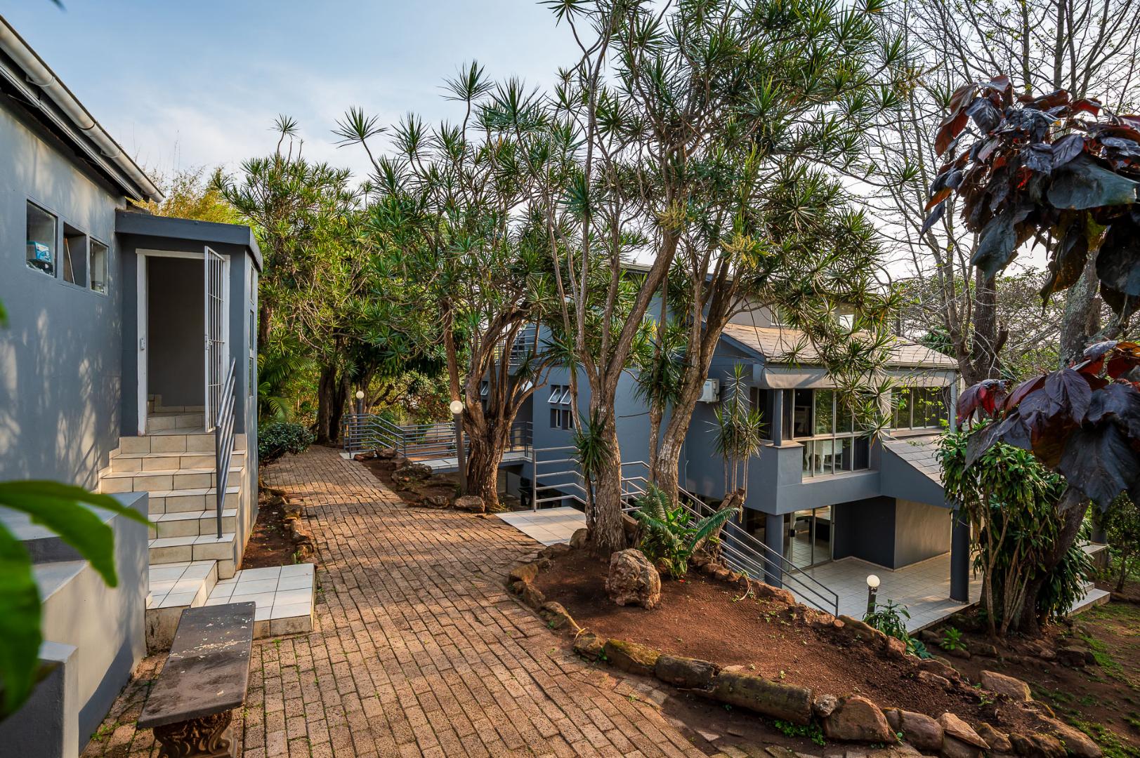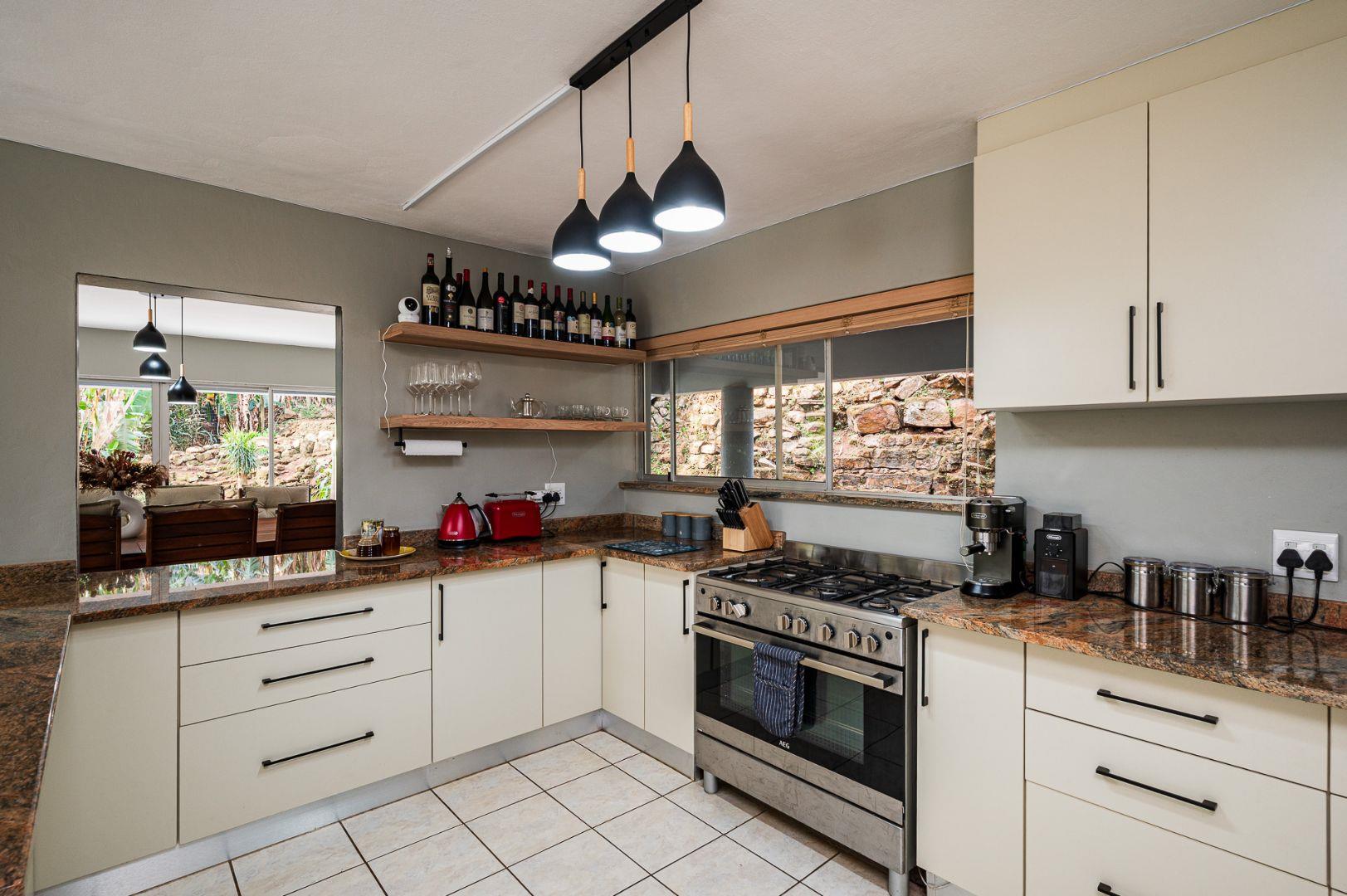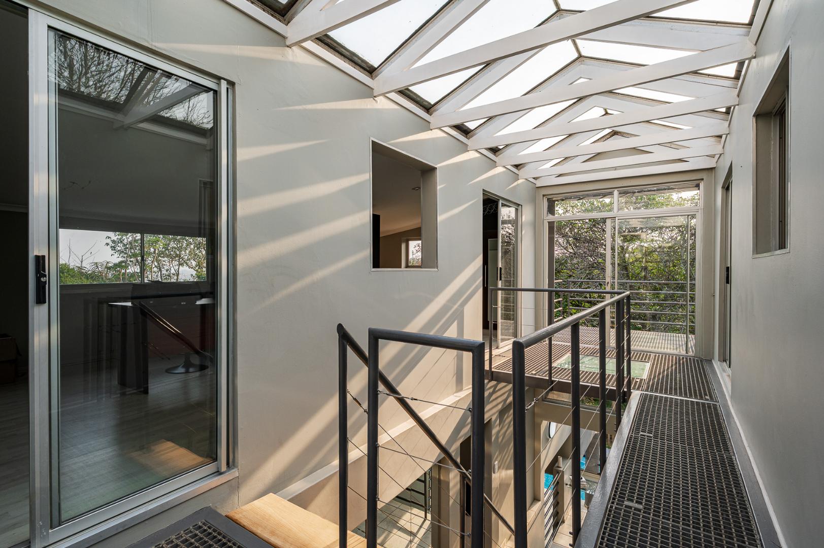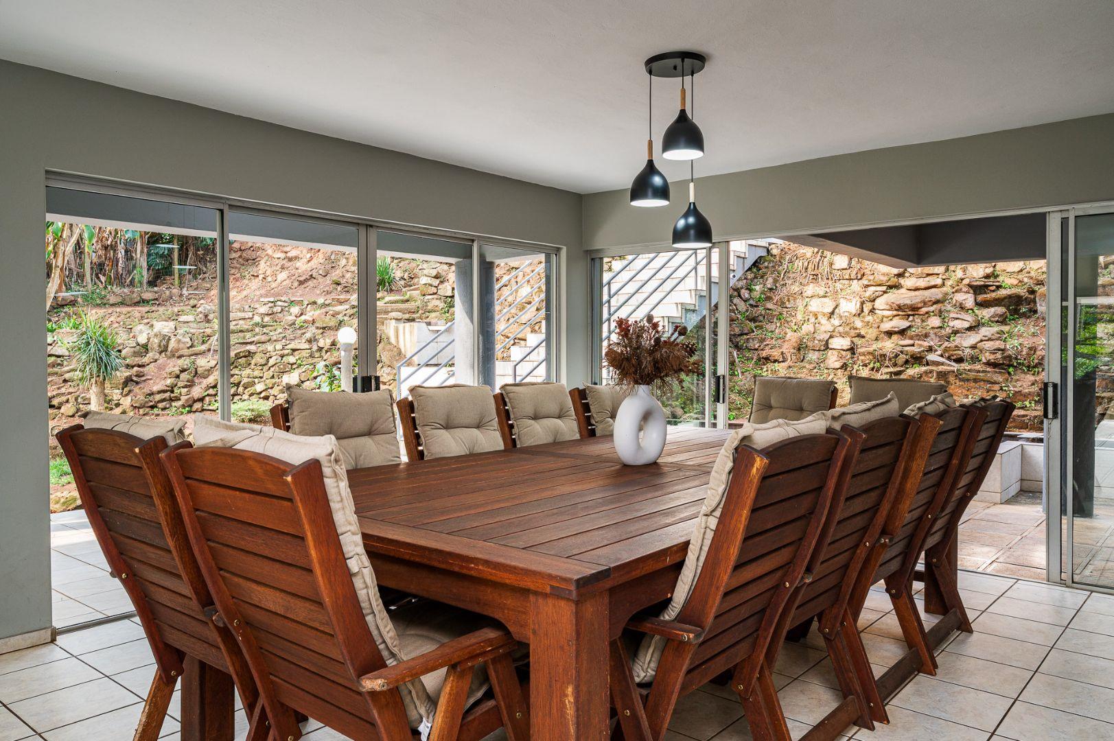 Set in one of Kloof's most sought-after roads, this unusual modern designer home has it all. Just a short walk from St Mary's School, this is a spacious, well-designed family home which truly has the wow factor – and loads of flexibility. Plenty of windows to let the light in and set over three floors. Fabulous for entertaining with open plan living room, dining room, modern kitchen, sunken lounge area and bar on the ground floor – opening up seamlessly onto a wonderful entertainment area and large, sparkling pool. Perfect for hosting unforgettable gatherings.