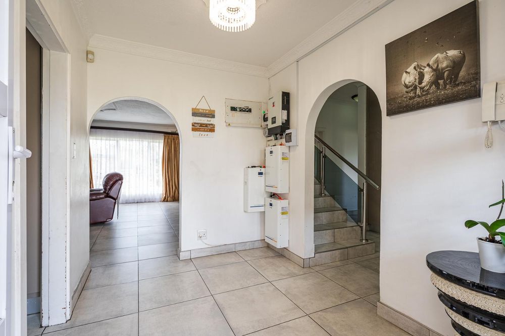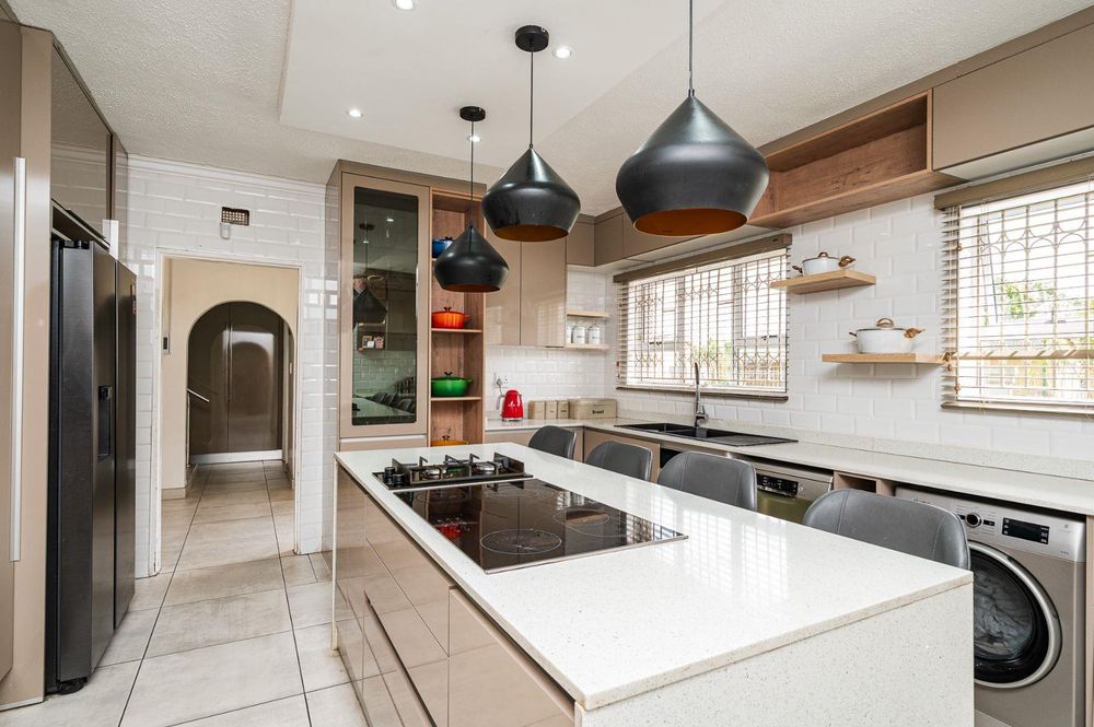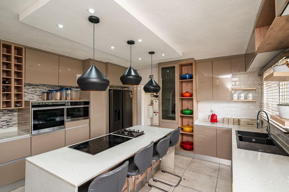 This beautifully modernized double-story residence offers 5 spacious bedrooms, including a luxurious main ensuite, with 2 bedrooms conveniently located downstairs and 3 upstairs, complete with a cozy pajama lounge. Step inside through the elegant entrance hall and enjoy open plan living with a stylish kitchen, dining area, lounge, and guest toilet.