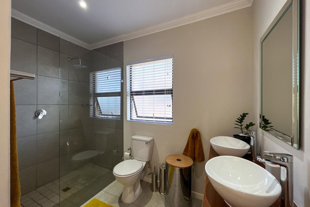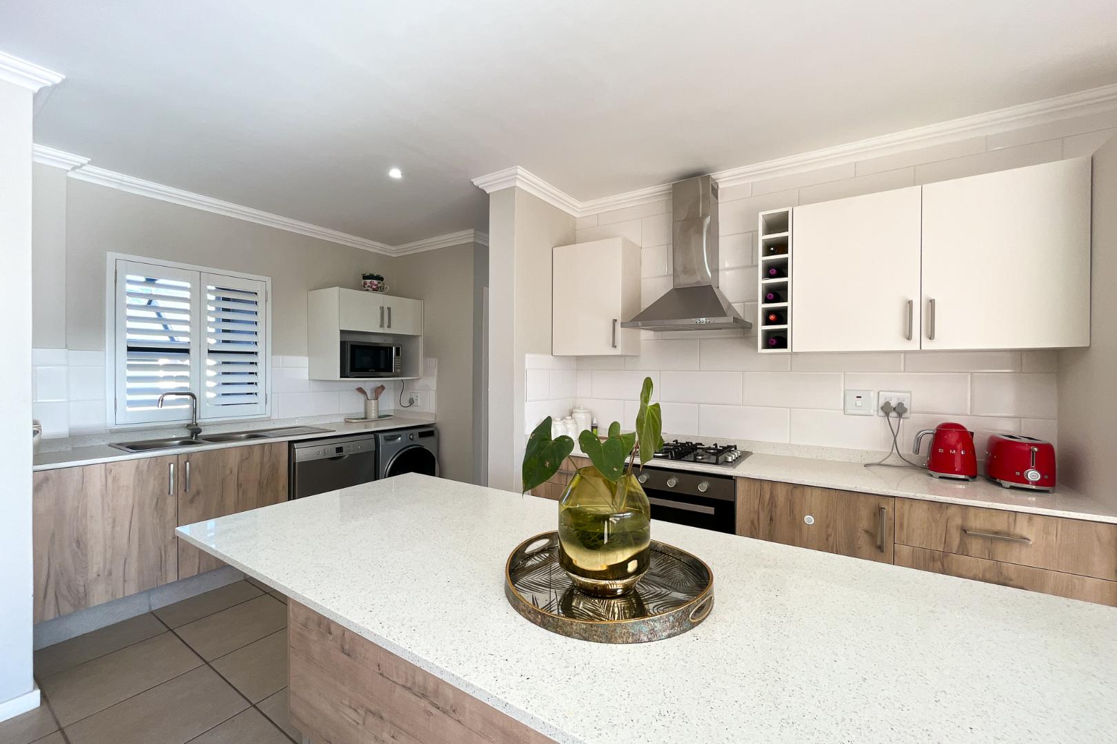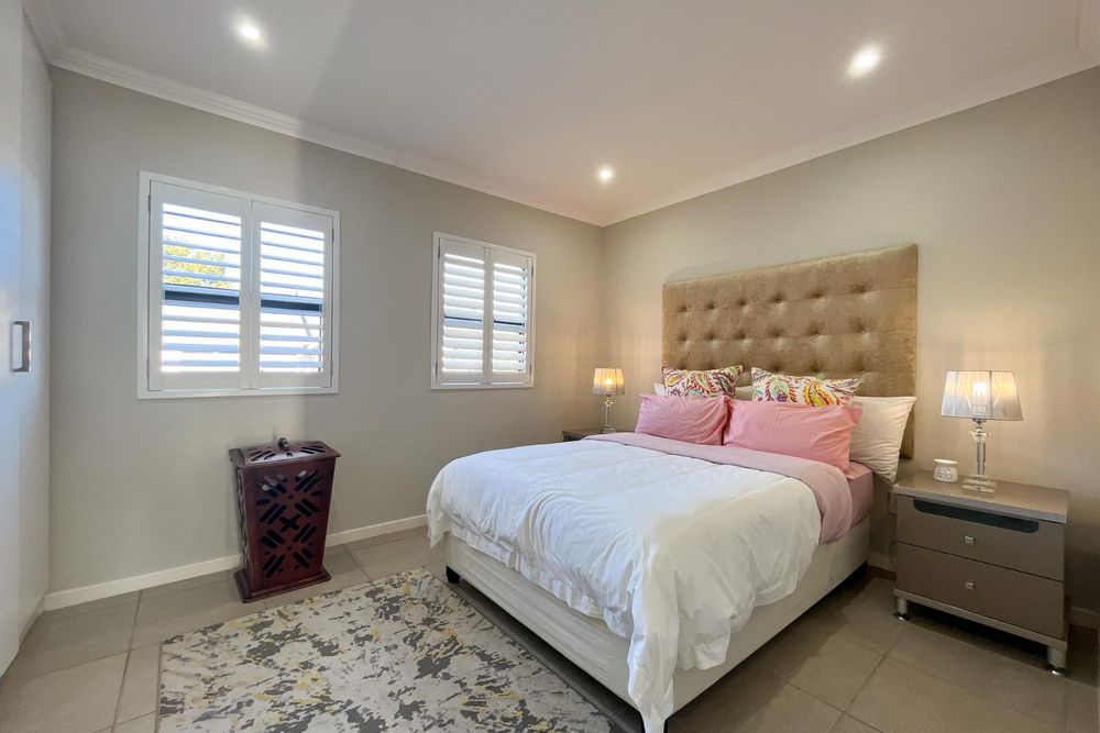 The kitchen is custom-built with top end oven/hob/extractor and breakfast bar/island with extra cupboards. There are 2 large bedrooms, a beautiful ensuite bathroom with his and hers basins and a family bathroom. Ample cupboard space with built in cupboards in both bedrooms, linen cupboards in the passage area and your own personal external store room!