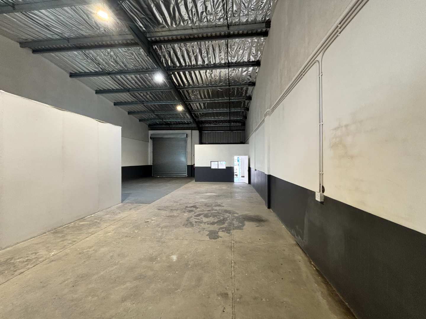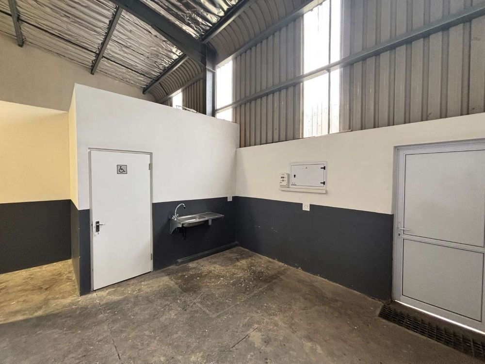 Additional features include ablution facilities, a wash basin, electrical points, and good natural light through high-level windows. The unit is positioned within an established industrial park environment with practical access for day-to-day operations.