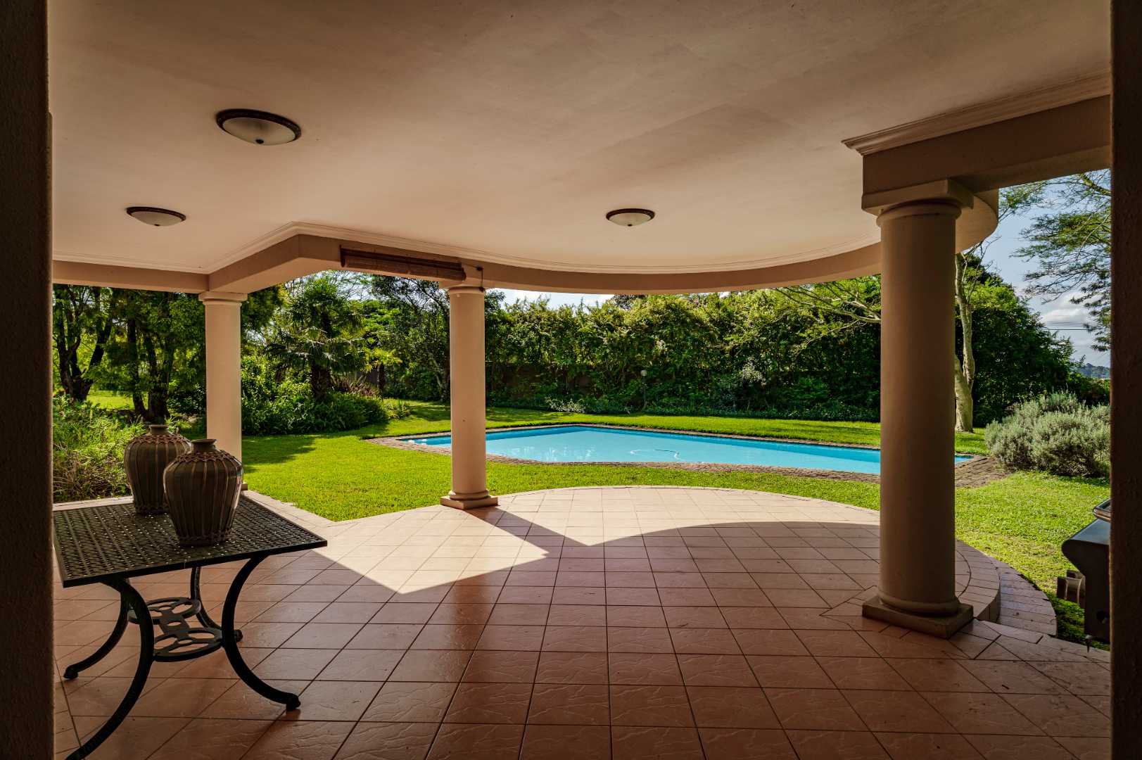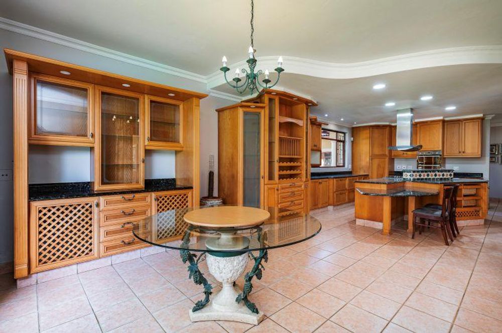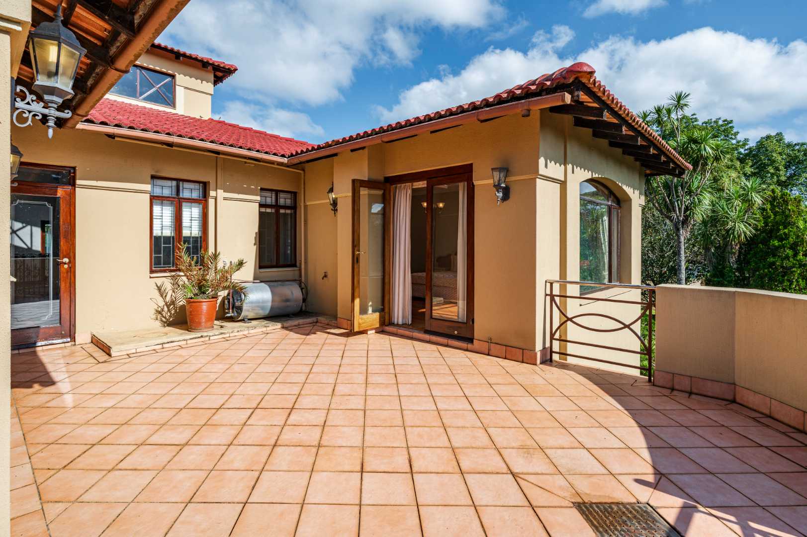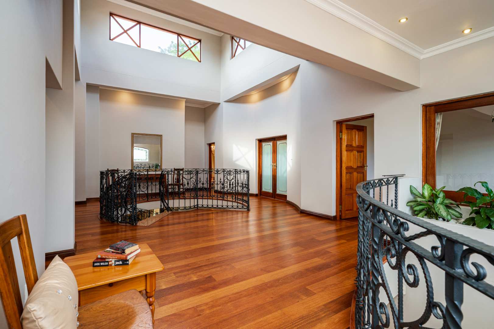 This upmarket home across two levels stands in the sought after area of Winston Park is beautifully appointed and perfect for the executive. As you enter the forecourt a feature fountain welcomes you. The magnificent entrance hall is complete with an elegant wrought iron sweeping staircase and water feature. This home is an entertainers dream. The spacious formal lounge beautifully fitted with a fireplace and chandeliers leads out onto a patio over looking the expansive, level, manicured garden complete with sparkling pool. The impressive dining room leads off the formal lounge. The gourmet kitchen which leads off he family lounge has granite counter tops, solid wood cupboards and a breakfast bar. It also has an eye level ove, gas hob, extractor fan, built-in fridge, wine rack, prep bowl and pantry cupboard everything that the chef would need to prepare for a large party of guests. There is also a separate scullery or laundry. A games room which could also be used as another lounge leads out onto the covered patio. Up the sweeping wrought iron staircase with double stairwell there are 4 spacious bedrooms with solid merbau wood floors. All have ducted air-conditioning. The main bedroom has a large walk in dressing room with full en-suite bathroom with double vanity basins and leads out onto a private patio overlooking the beautiful garden. There is another bedroom also with a bathroom en-suite. A family bathroom adjoins two further bedrooms that open out onto a patio. There is also a pajama lounge and gym room complete with jacuzzi. The entertainment area outside flows from the covered patio complete with built-in gas braai onto the expansive manicured garden with sparkling pool. There is also a a cricket net and built-in sandpit perfect for the children to play whilst the guests are being entertained. There are staff quarters with kitchenette and shower and a wooden tool shed for additional storage that also has electrify. The home has excellent security with alarms, camaras and beams. The electricity is three phase and there is a generator. Garages for four vehicles as well. This prestigious property in the perfect location awaits you. Don't delay call me today for a private viewing.
