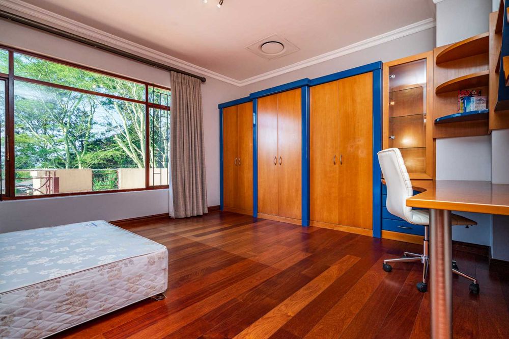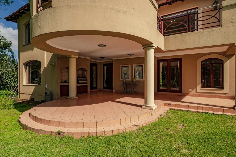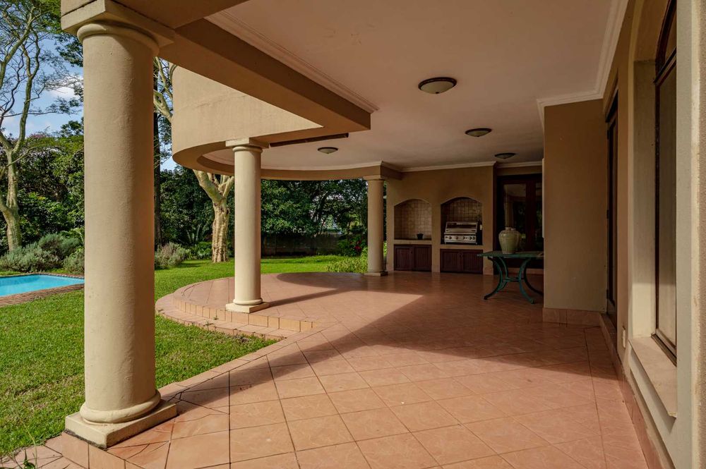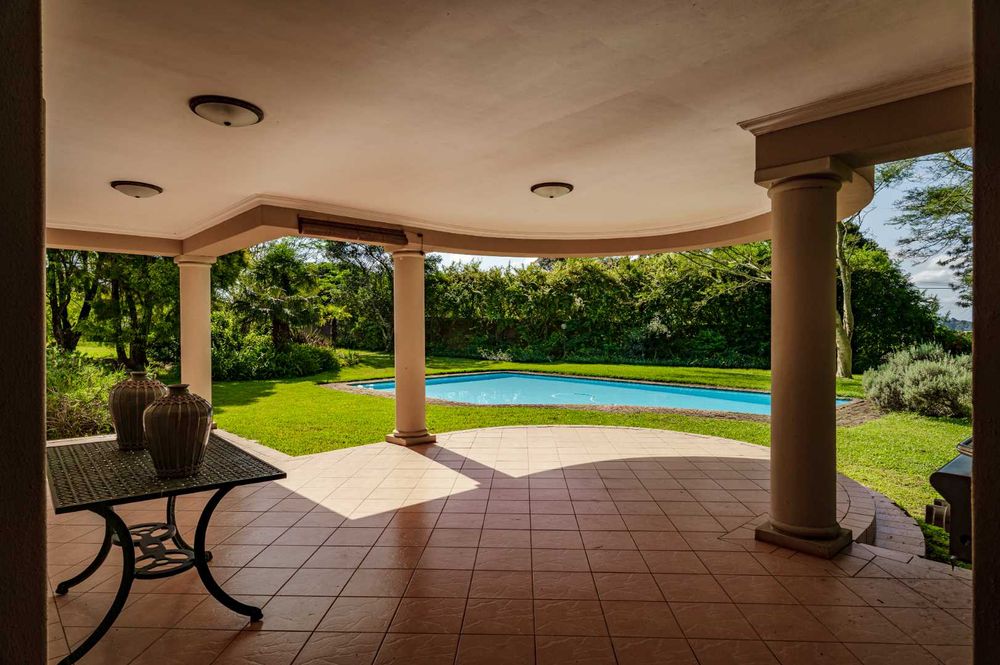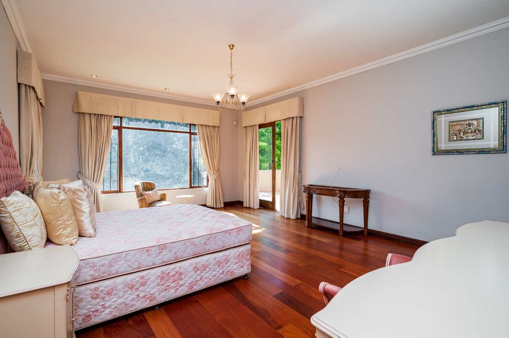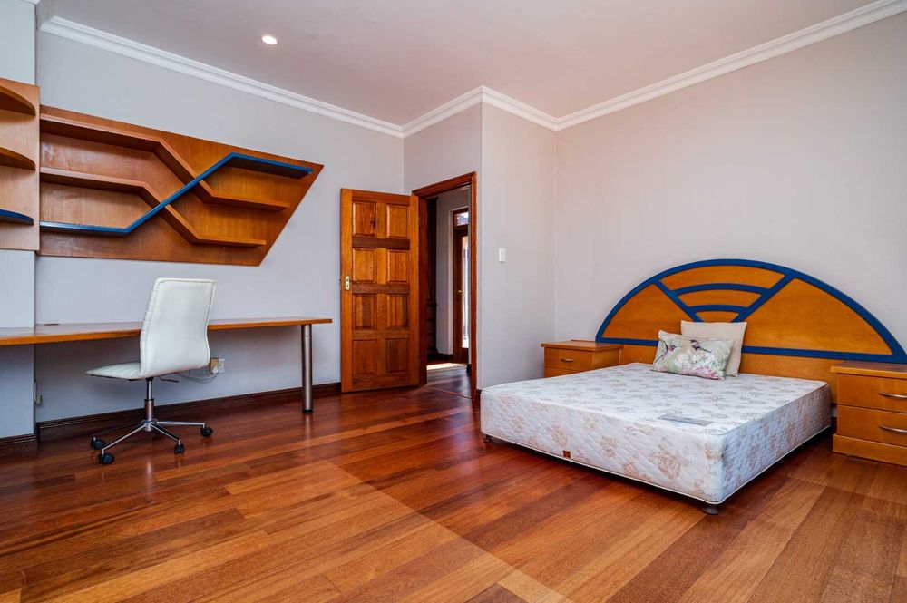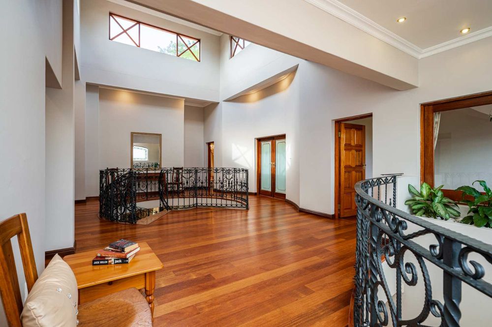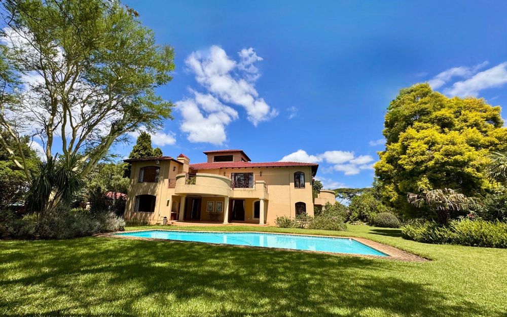 The outdoor entertainment area, complete with a built-in gas braai, extends from the covered patio onto the expansive manicured garden and sparkling pool. Additional features include a cricket net and built-in sandpit—perfect for children to enjoy while guests are entertained.
