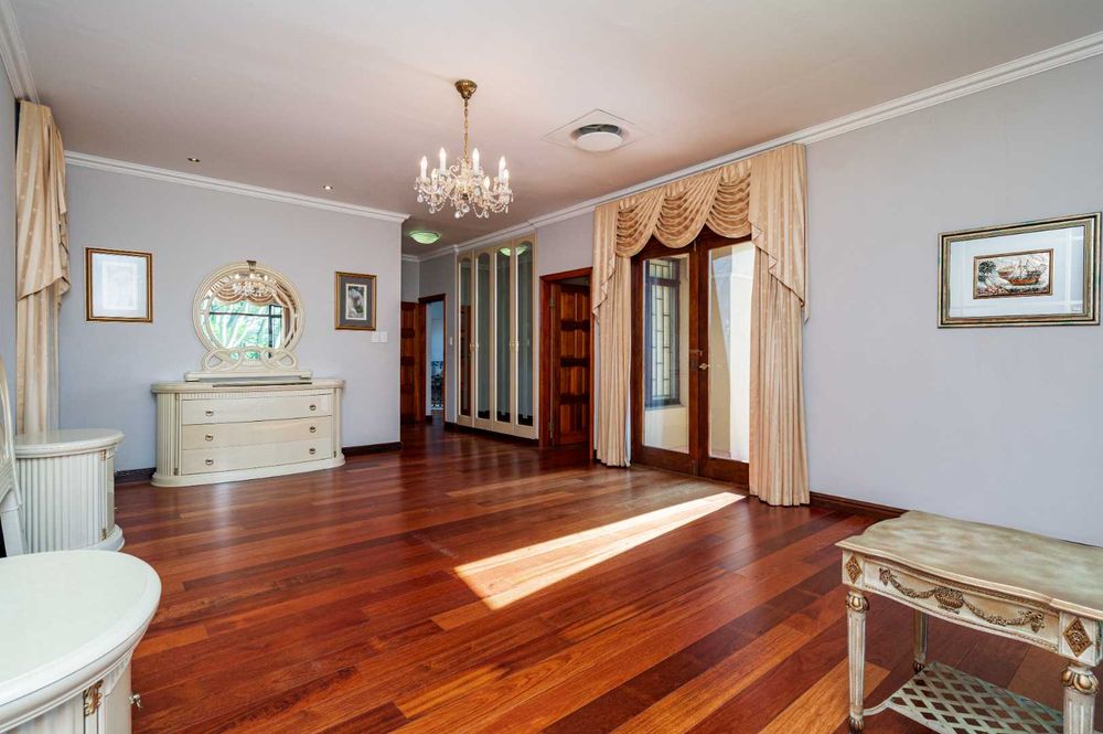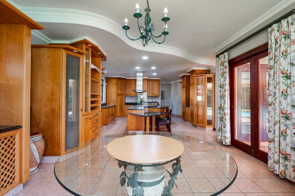 Designed with entertaining in mind, the spacious formal lounge features a fireplace and exquisite chandeliers, and opens onto a patio overlooking the expansive, level, manicured garden and sparkling swimming pool - an ideal setting for family gatherings and outdoor enjoyment. A versatile games room, equally suited as an additional lounge or playroom, also opens onto the covered patio, enhancing the home’s superb indoor-outdoor flow. An elegant dining room flows seamlessly from the lounge, perfect for both intimate family dinners and larger celebrations.