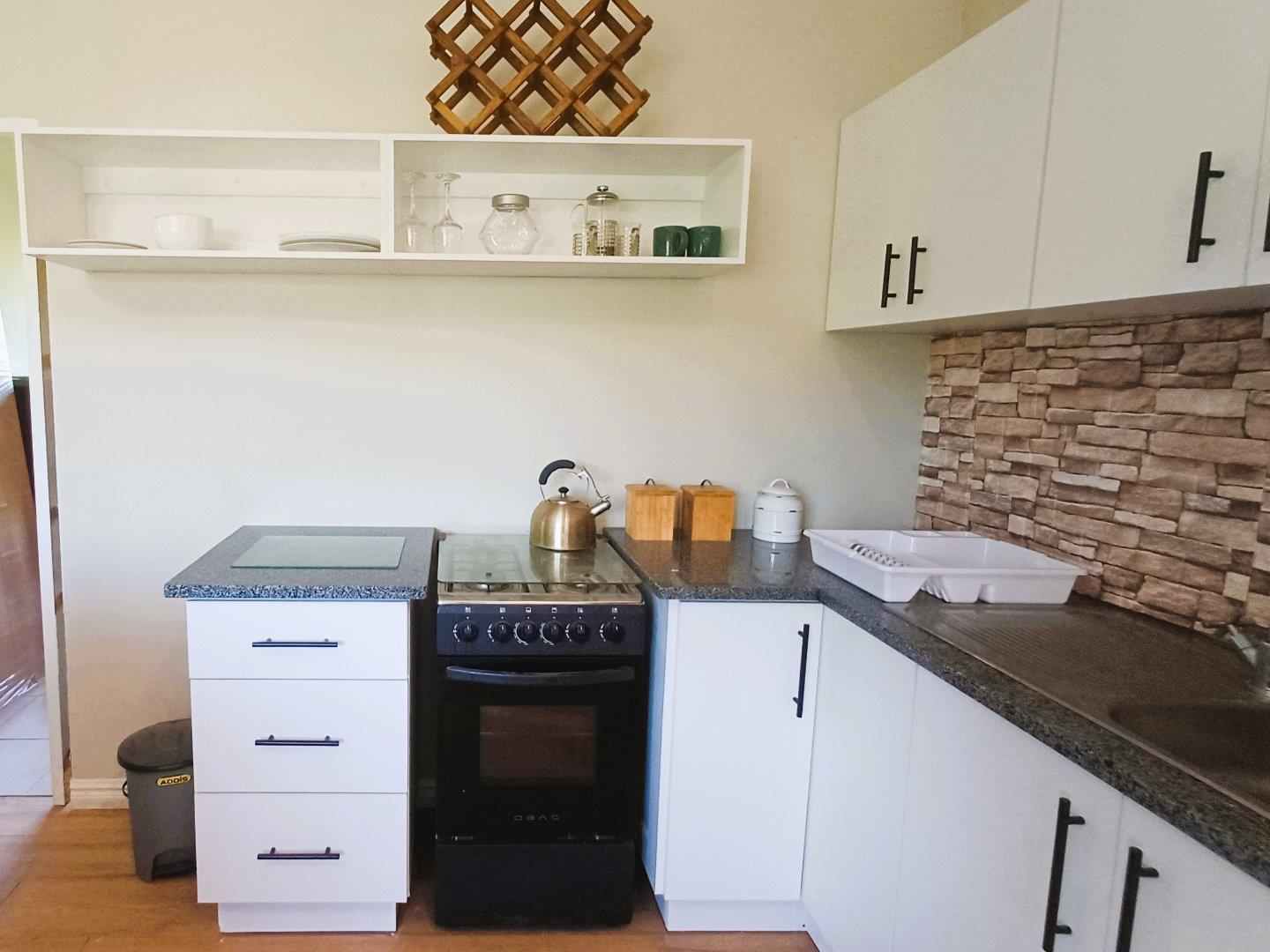The open-plan living area effortlessly combines the lounge, dining, and kitchen spaces, creating a fluid and inviting atmosphere. The contemporary kitchen, featuring a gas stove, caters to your culinary pursuits with ease. Adjacent to the living space, the cozy sleeping area includes a bespoke wardrobe and side tables, offering generous storage. The bathroom provides a serene space for relaxation, with a rejuvenating shower to refresh you after a busy day.