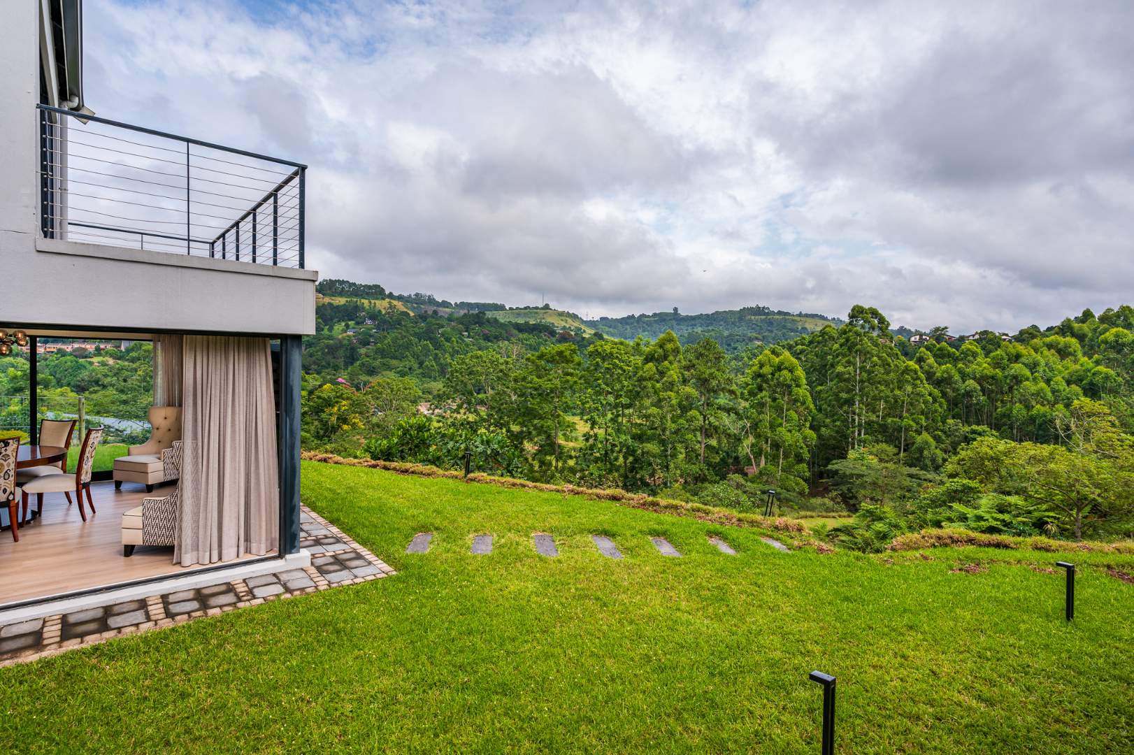 The main bedroom stands out as an extravagant retreat, featuring ample cupboard space, a walk-in closet, and a full bathroom with a shower, toilet, sink, and a floating bathtub. Step onto the spacious balcony from the main bedroom and be captivated by breathtaking views of Mother Nature in Assagay.