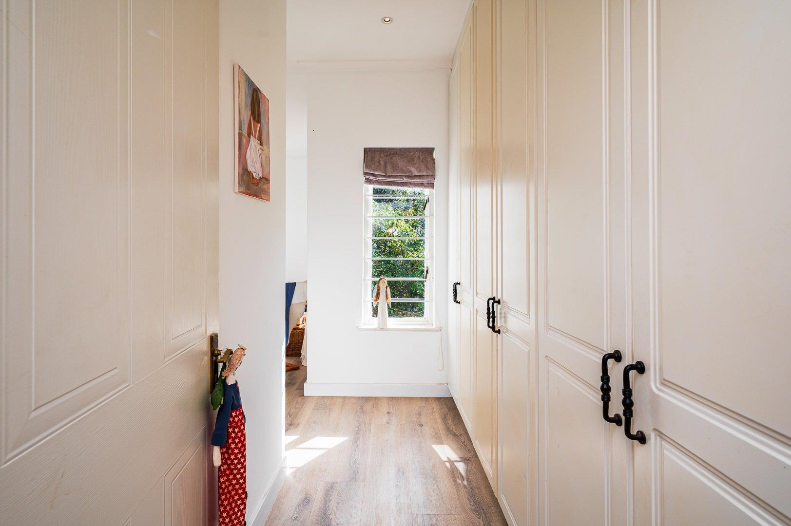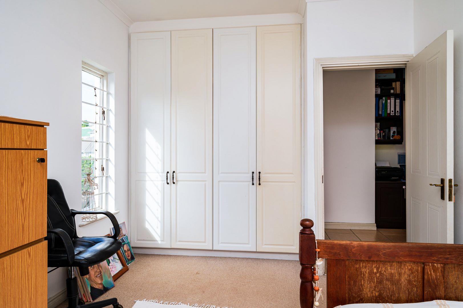 The patio is the perfect setting for sunset relaxation, with an idyllic outlook onto trees full of birdlife, a private low-maintenance garden, tranquil dam and walking paths beyond that. Downstairs, you’ll also find a guest loo, and entrance to the automated double garage.