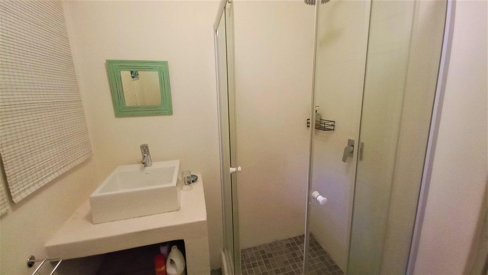 The bathroom offers a refreshing shower powered by a gas geyser, while the bedroom provides a restful double bed and your own private entrance for added privacy. Rest easy knowing security is top-notch, with an alarm system and panic button in place.