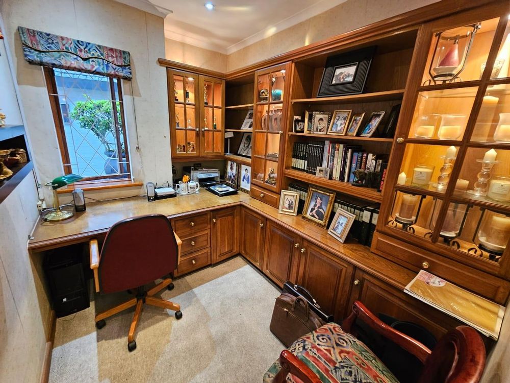 Perfect for a work from home business there is a study with built in cabinets perfect for all your books and work documents.