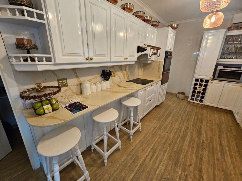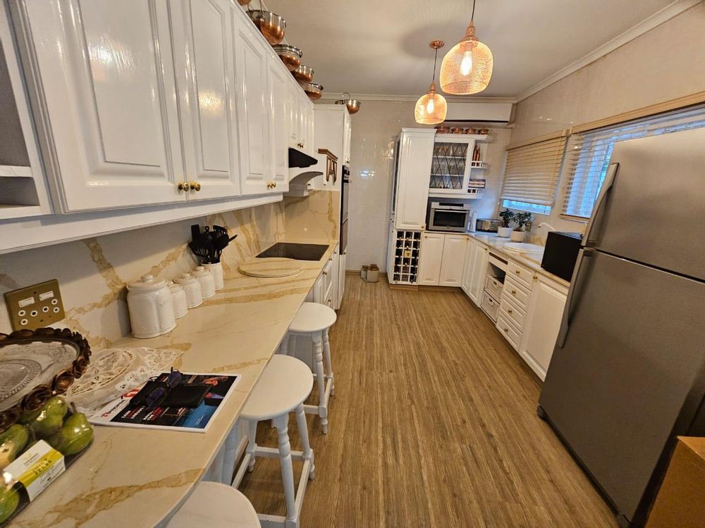 The kitchen is stunning and modern and has been recently renovated to a high spec with both gas and electric hobs, ample cupboard space and room for appliances with a large pantry. There is a breakfast nook area with bar stools and there is a separate scullery and laundry.