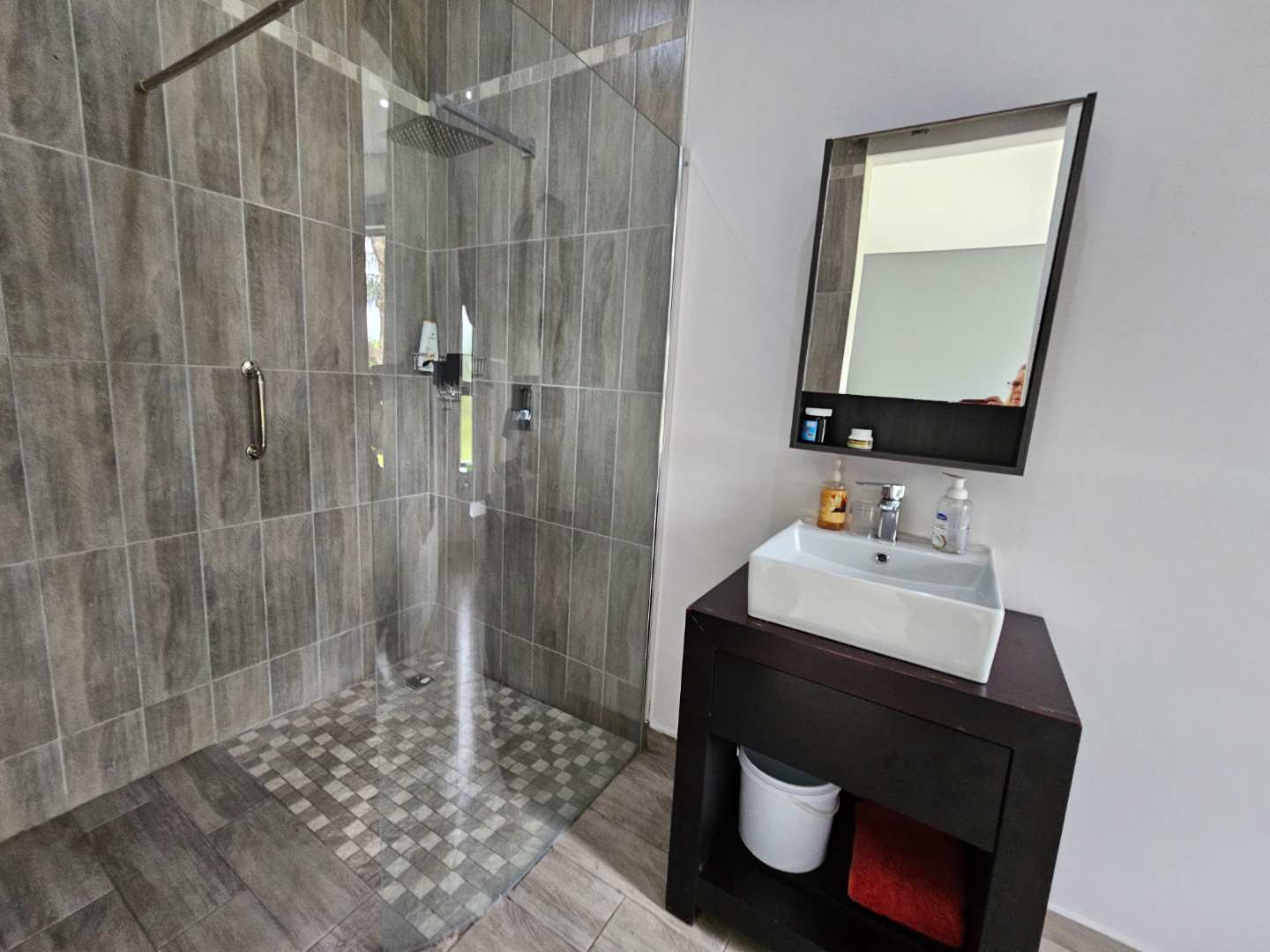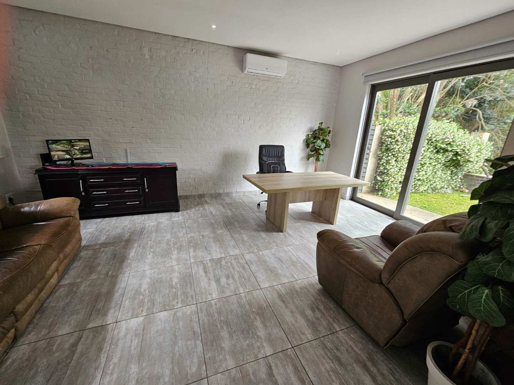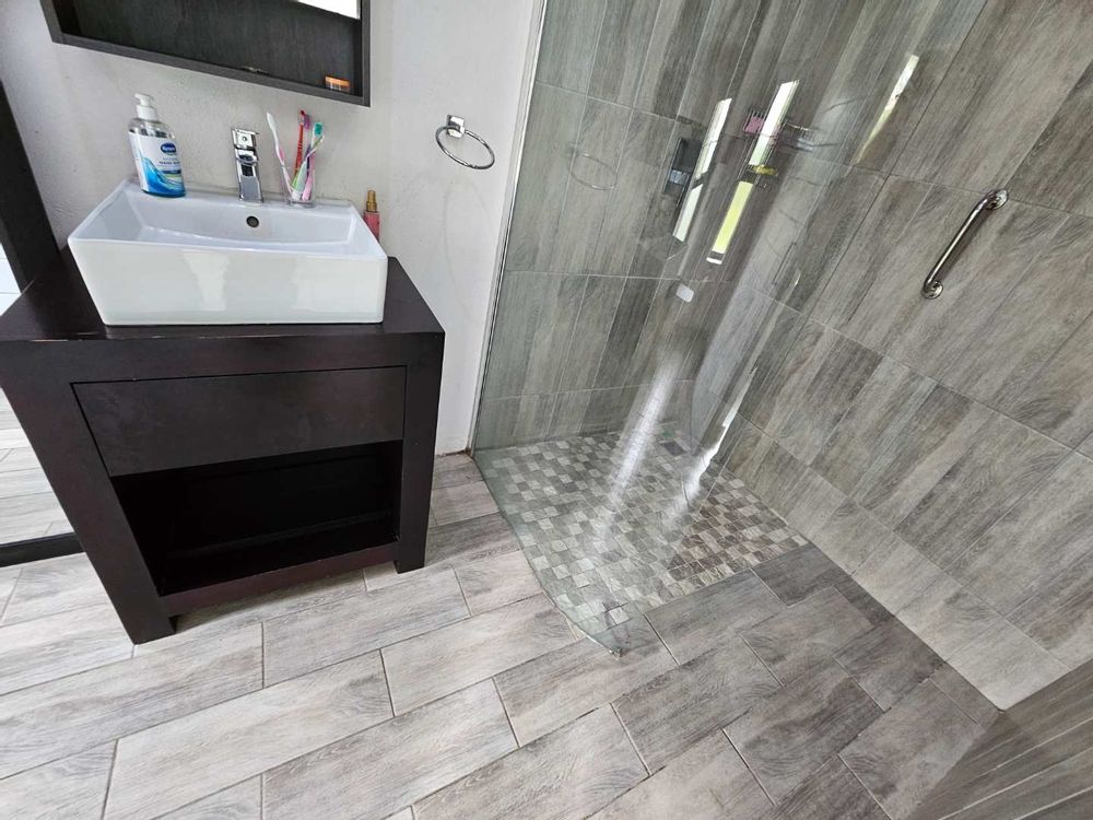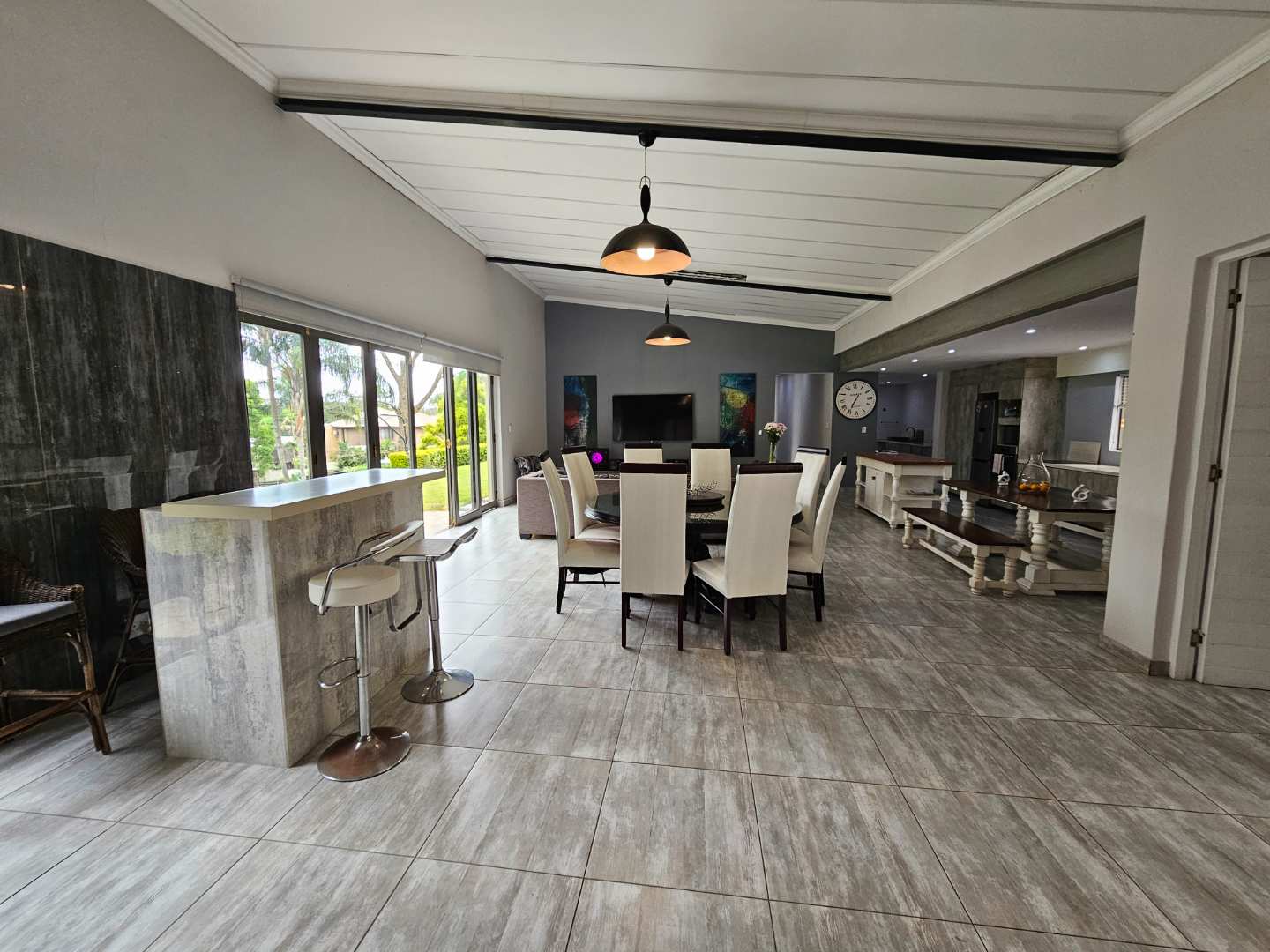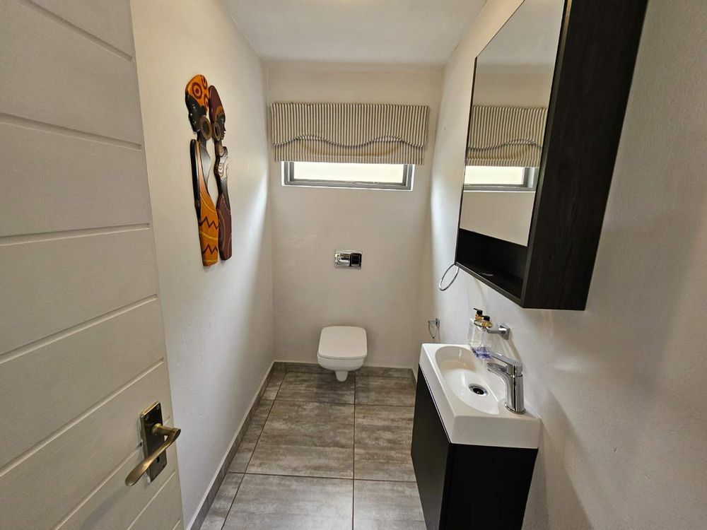 This newly built stunning, modern and open plan home is ready to move in, relax and enjoy. No work needs to be done. It offers 4 airconditioned bedrooms with built in cupboards and en-suites. The main bedroom has a full en-suite with two wash basins, shower, bath and dressing room.