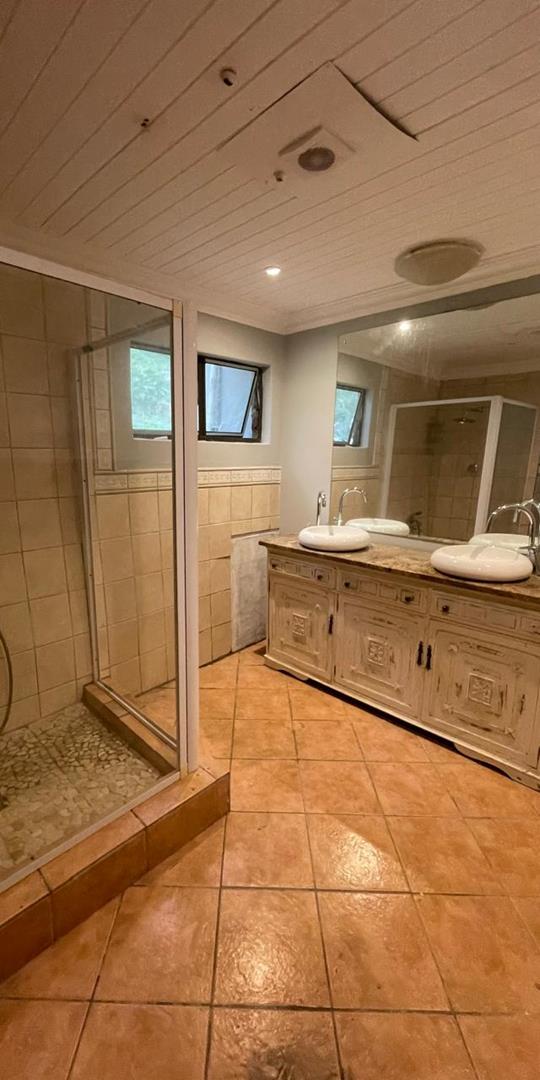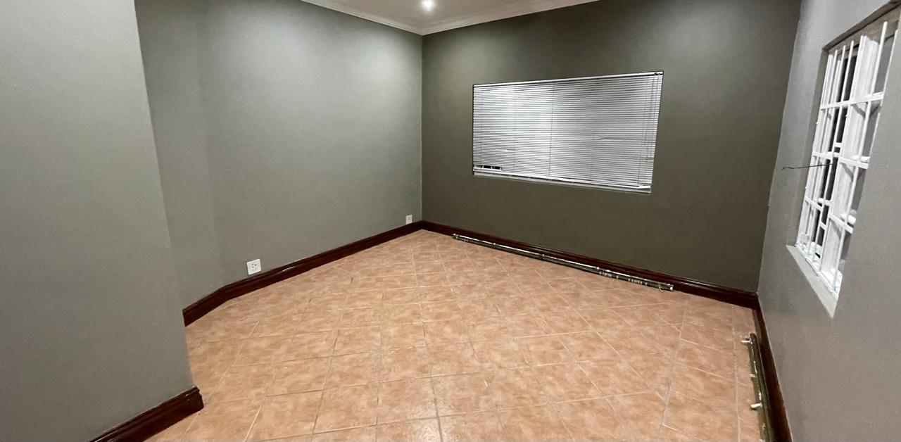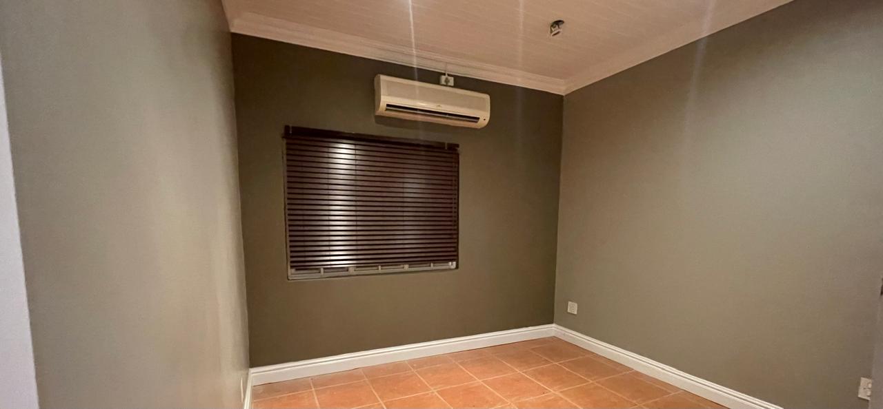 This three-bedroom house is available for rent at R12 000 per month. One room lends itself perfectly as a home office. Inside, you’ll find a dining room that leads directly onto a covered veranda which is ideal for relaxed meals or quiet moments outdoors.