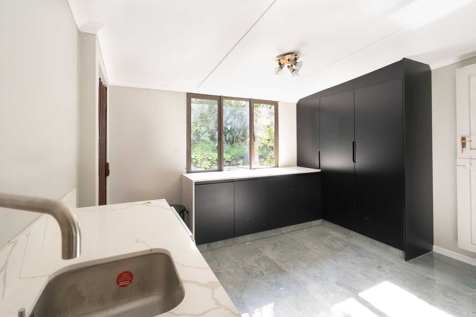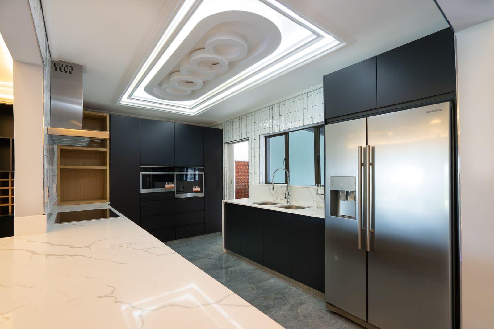 Stylish kitchen with caeserstone countertops and ample cupboard space with an