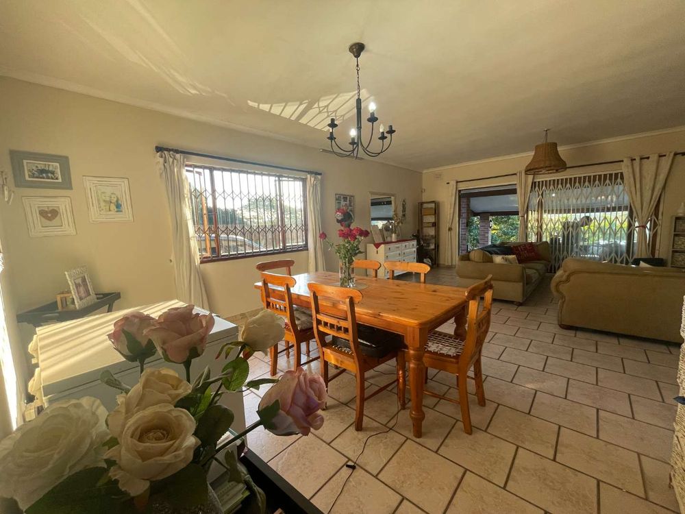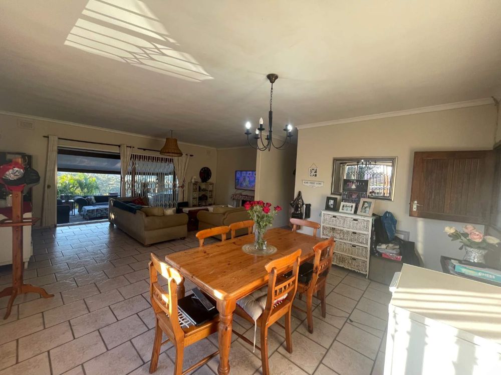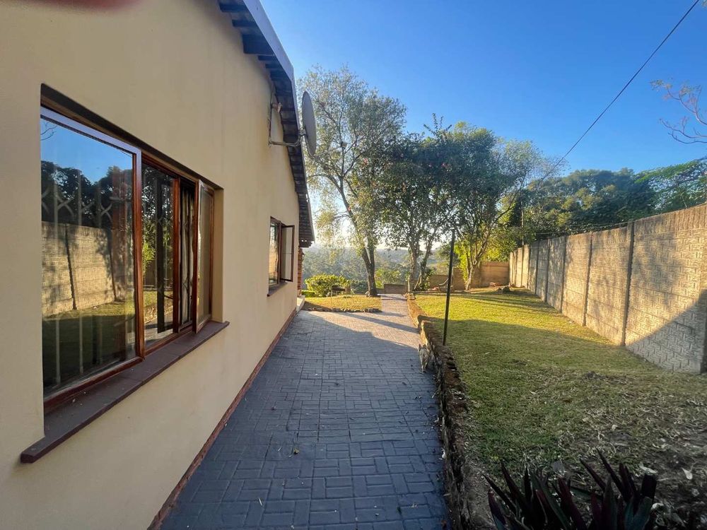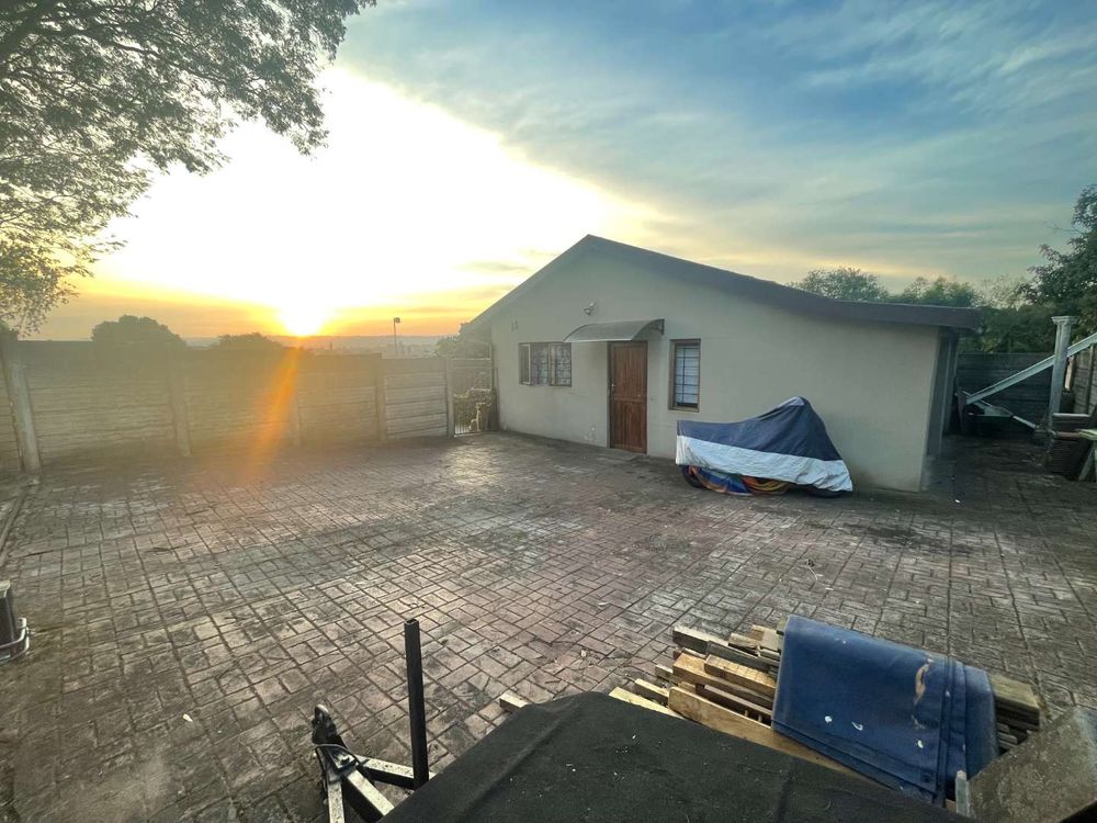 This stunning property boasts a main house that is tiled throughout, featuring 3 bedrooms with built-in cupboards and a full family bathroom with a bath, shower, basin, and separate toilet. The kitchen is equipped with built-in cupboards, melamine tops, electric stove, oven, extractor fan, and plumbing for convenience. The open plan dining room and lounge lead out to a large covered entertainment area with a built-in bar, braai, and a breathtaking view. The outdoor space includes a sparkling pool and a thatched gazebo, perfect for relaxing and hosting guests. With a rental potential of R12,000 per month, this property offers both comfort and investment opportunity.