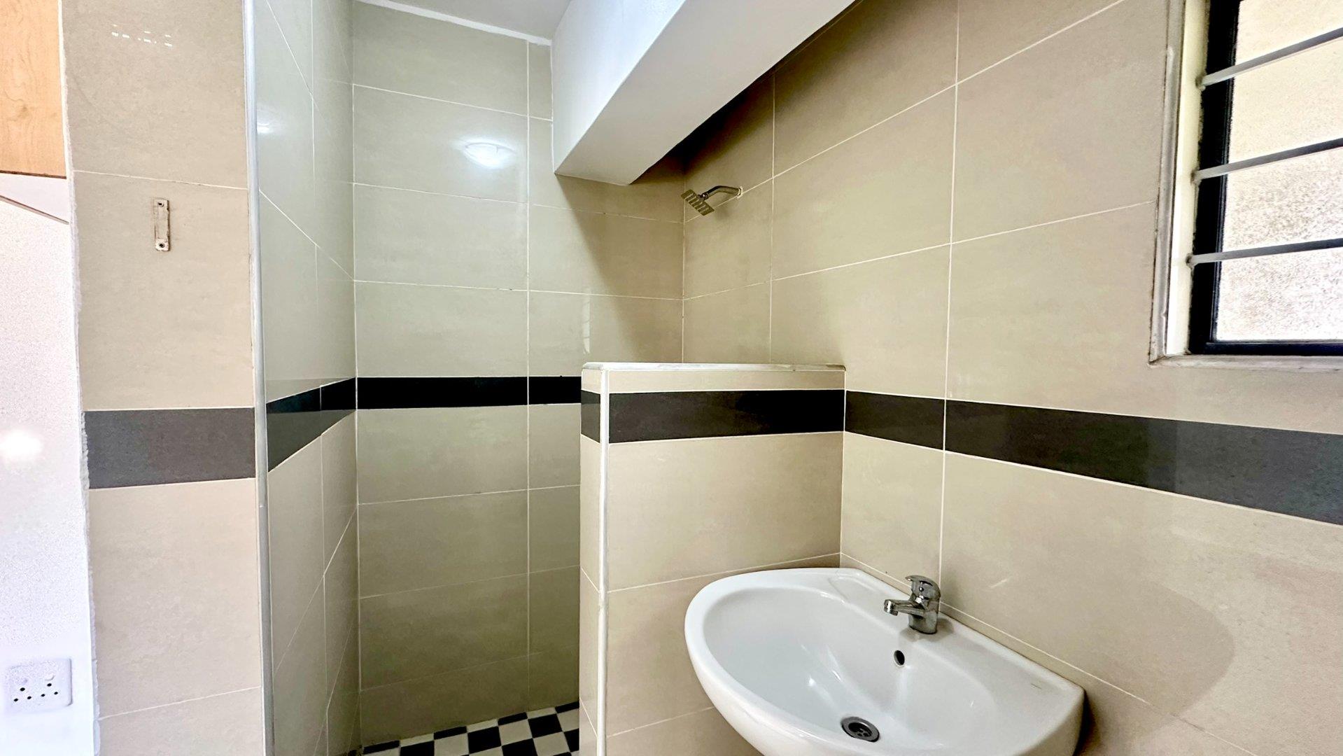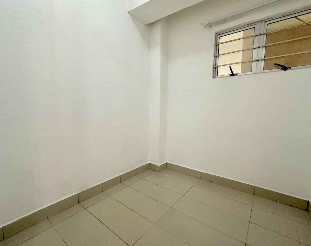 The main bedroom includes built-in cupboards, while the additional half-bedroom offers flexible space that can be used as a study or extra storage space. The unit features a well-appointed bathroom with a shower, toilet, and basin, along with the added convenience of a private laundry room. Security is ensured with burglar guards installed on the windows.