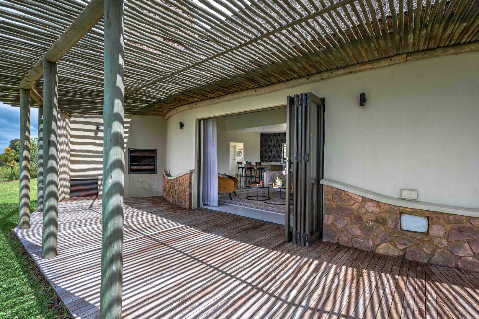 Outside the gardens are perfect for viewing the abundant wildlife which include giraffe, zebra, wildebeests like being on a permanent safari. The patio has a built in braai perfect for entertaining.