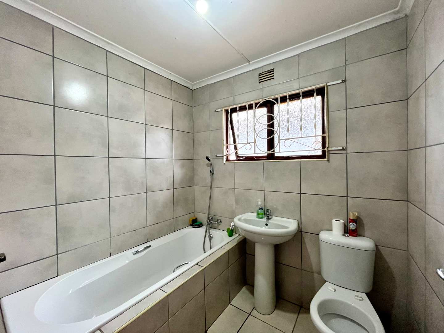 Family bathroom: Bath, basin, and toilet