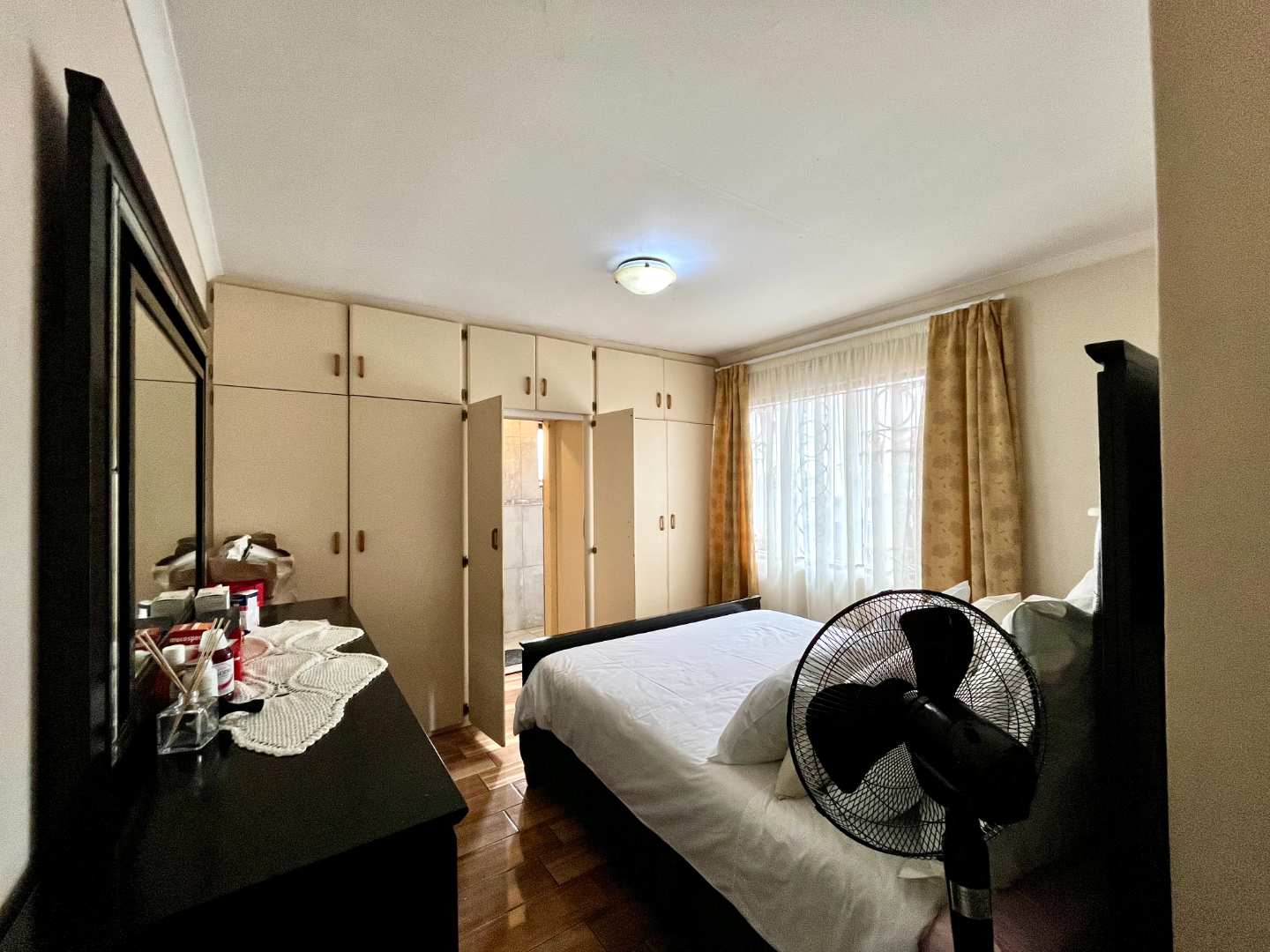 Bedroom 2 (Main): Built-in cupboards with a private ensuite (shower, basin, and toilet)