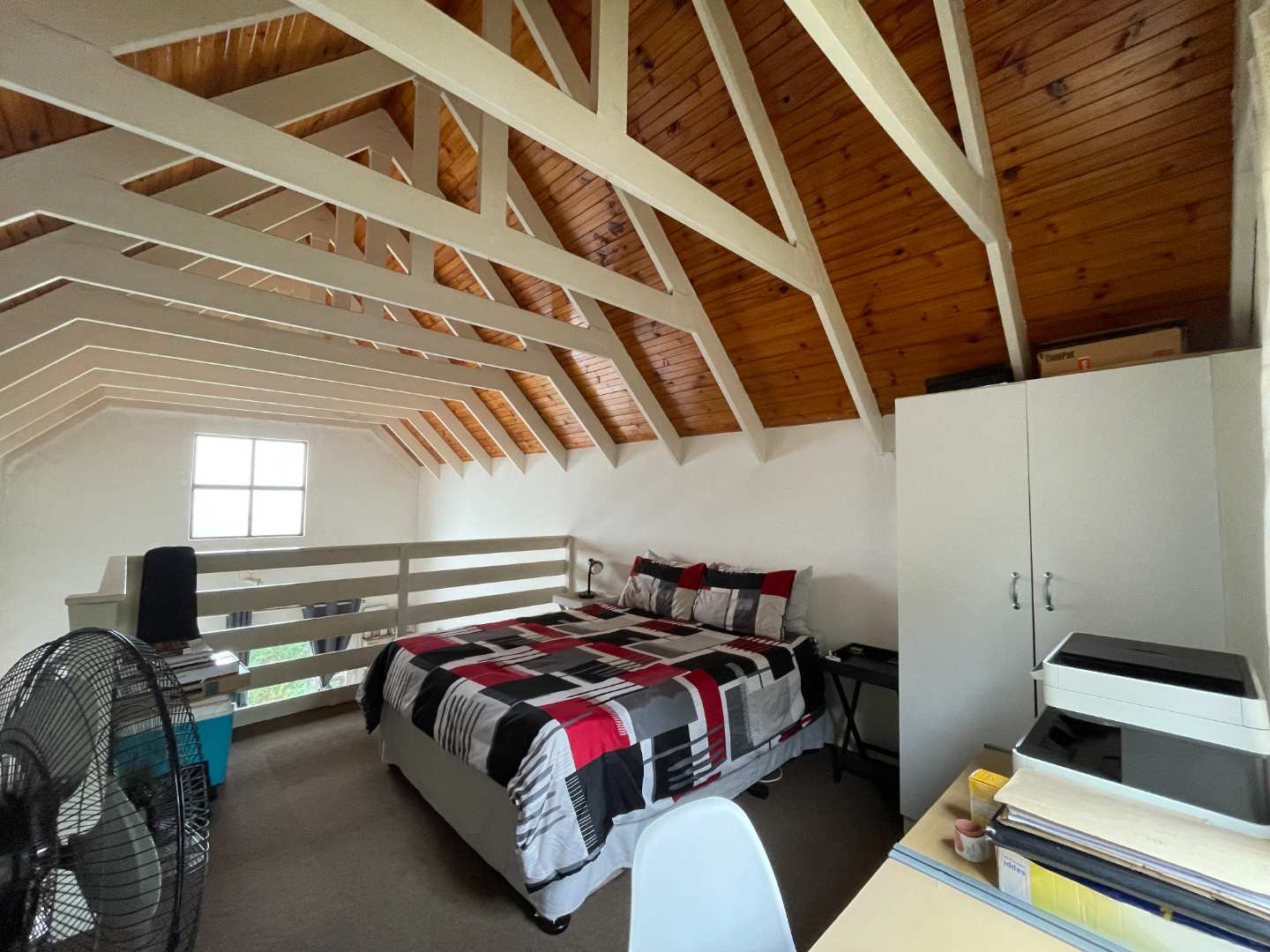 Upstairs, the bedroom comes with built-in cupboards and plenty of light, making it a bright and comfortable space to relax.